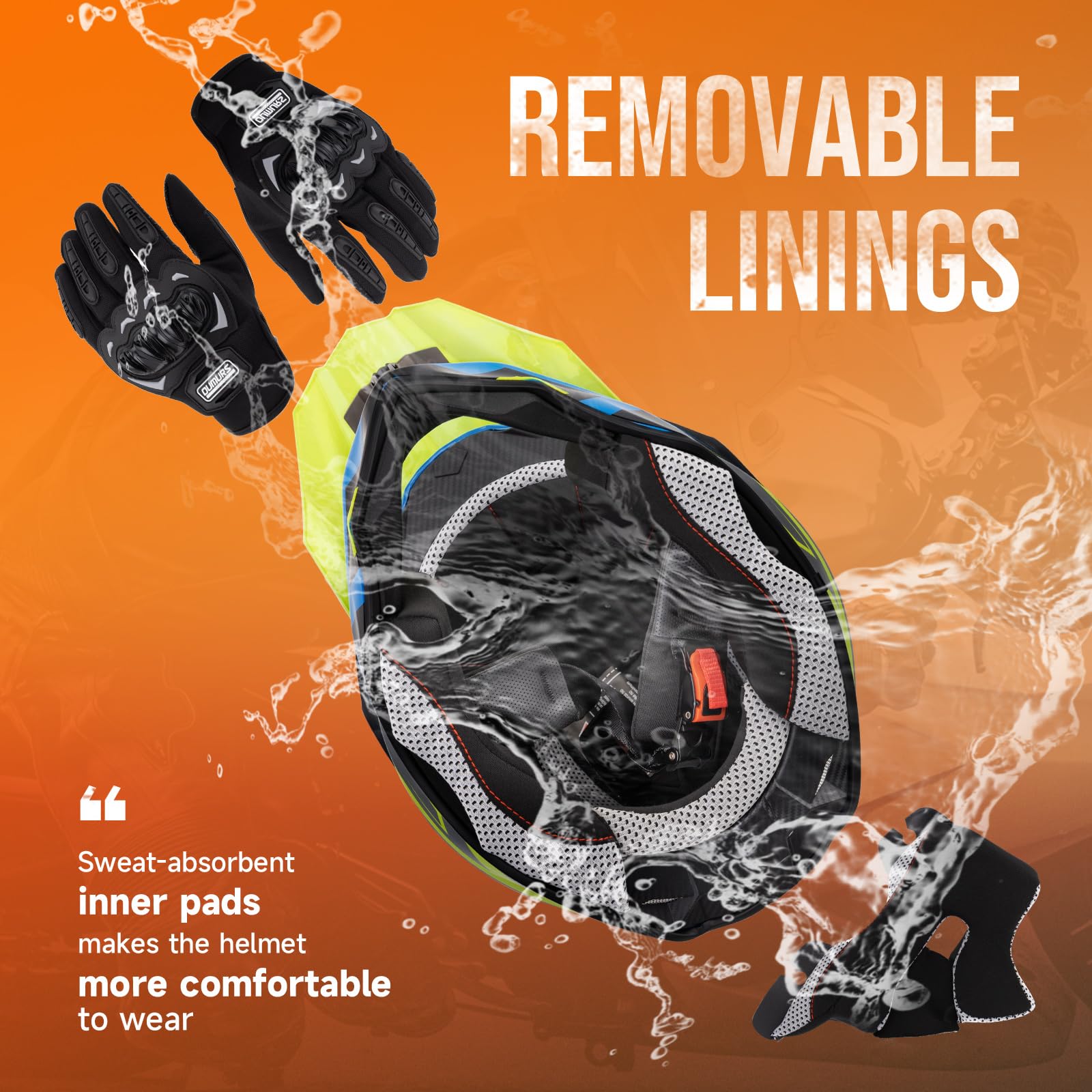 OUMURS Adult ATV Dirt Bike Helmet with Gloves & Mask Adjustable Sun Visor Motorcycle Adult Helmet Off-Road Motocross Downhill Moped MX for Unisex-Adult-Yellow Blue, XL