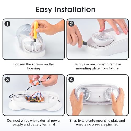 - ??¡¼EASY INSTALLATION¡½ This wet location emergency lights can be wall mounted, universal J-box mounting pattern and snaps into place for fast and safe electrical connection. 360 degree rotation adjustable lamp heads allow this emergency light to be pointed in any direction you want.