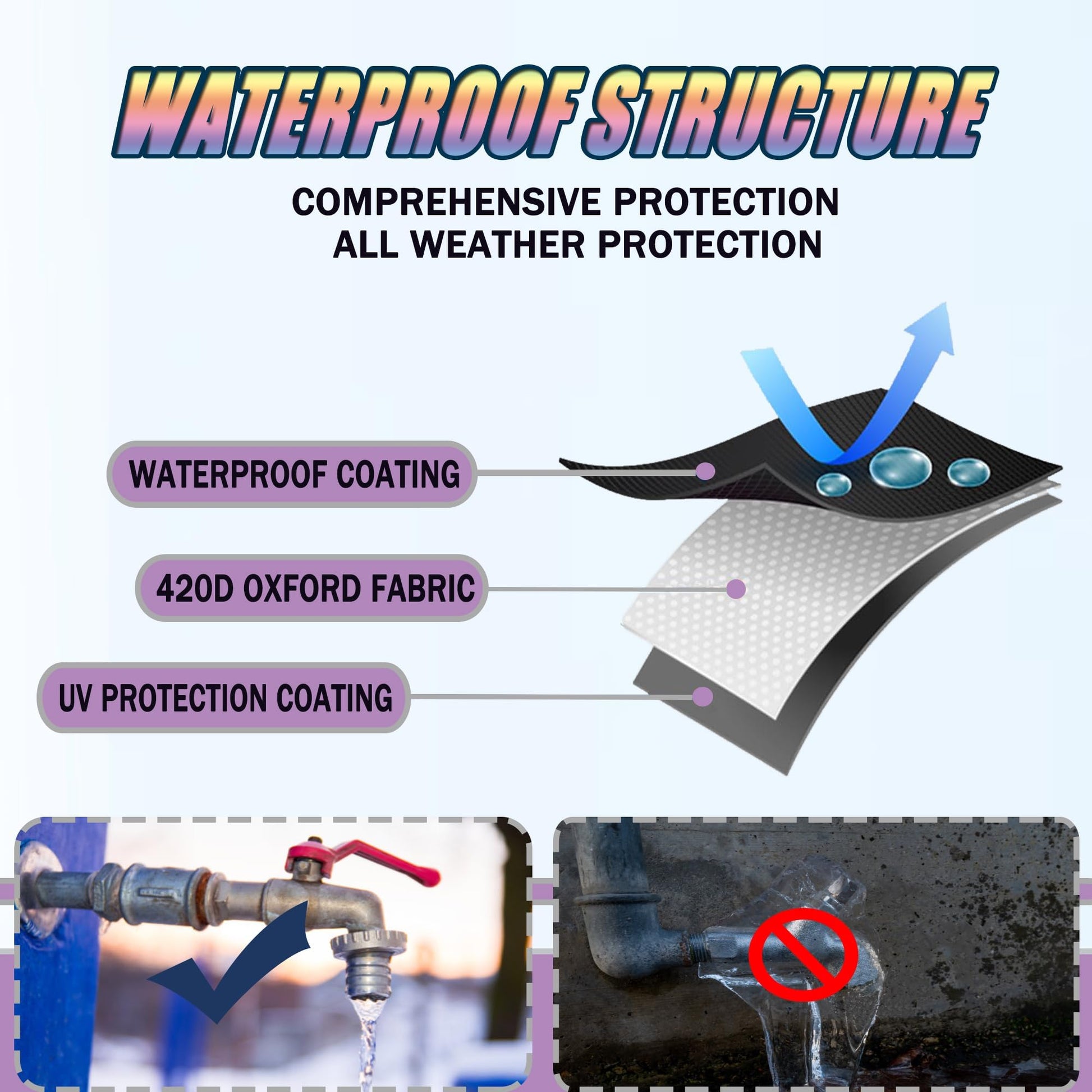 - WATERPROOF MATERIAL - Made of three-layer design with high-quality anti-freeze and waterproof material. The surface is 420d Oxford protective waterproof coating to prevent rainwater from entering. The middle is filled with special and thick insulating cotton, which has good thermal insulation and can effectively resist severe cold weather. The inner layer is I9OT polyester taffeta, which is effectively waterproof.