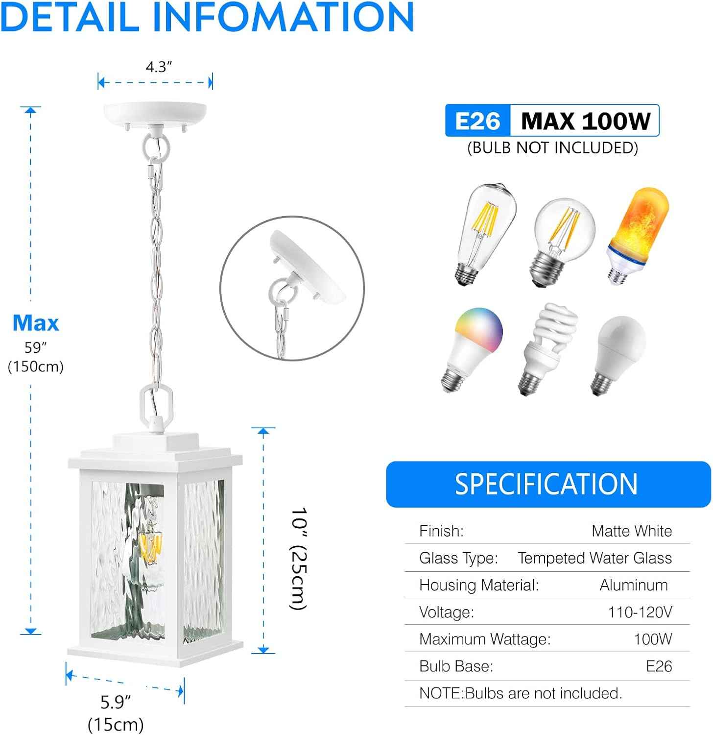 - ✨【Easy to Install & E26 Bulb】It is very easy to install the chain to hang chandelier, and you don't need professional skills or tools to complete it. Just follow the steps in the manual and the installation will be completed in a few minutes. This front porch ceiling light is very suitable for outdoor welcome light or safety light, which is used to illuminate backyards, gardens, terraces, porches, streets, lawns, driveway decoration, and so on. It is compatible with all kinds of E26 bulbs.