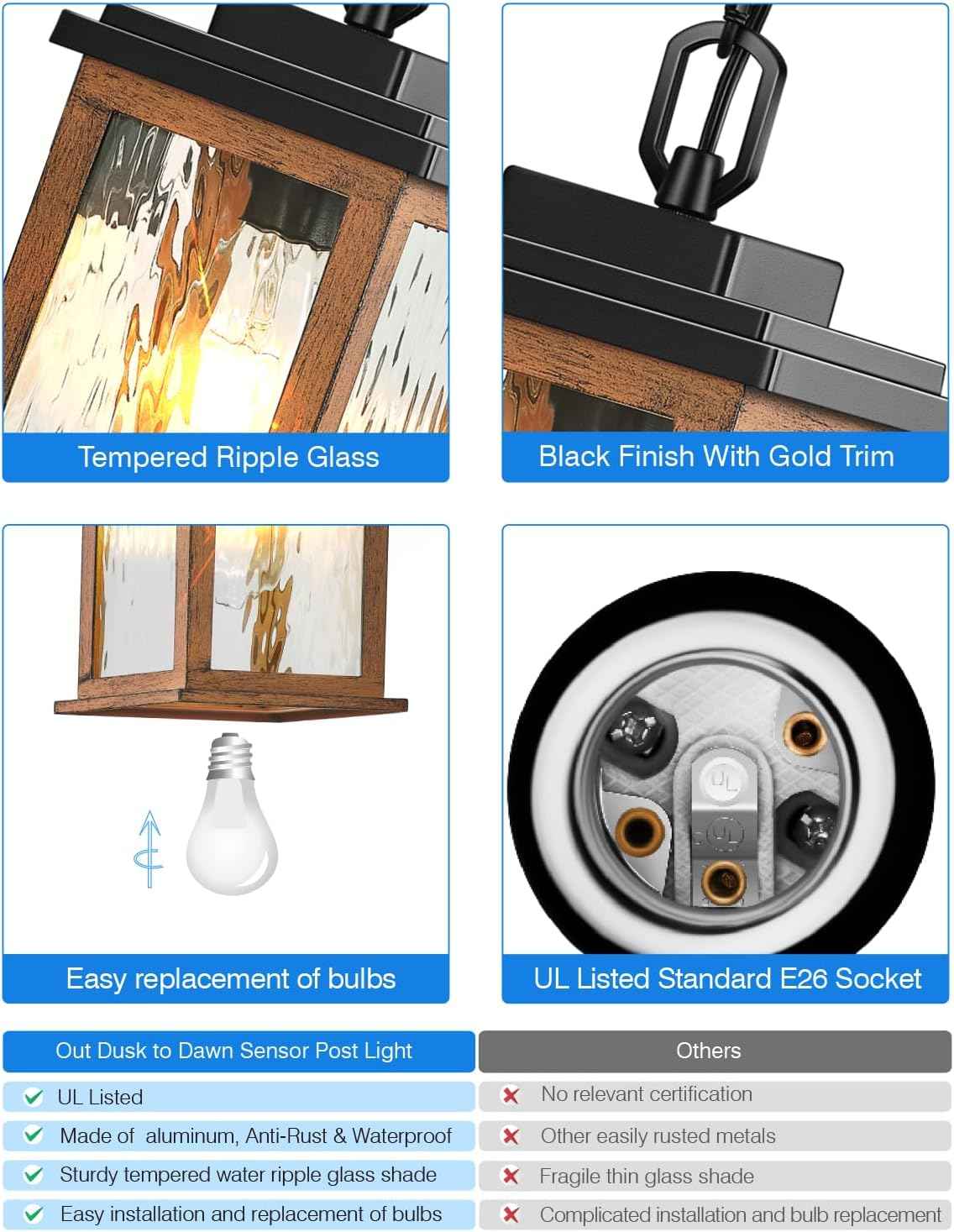 - ✨【Distinctive Design】This outdoor pendant lights feature a water ripple glass. The outdoor hanging lights can emit soft light through the glass, creating a comfortable and warm atmosphere. The bronze exterior of the cuboid looks textured. It is suitable for many occasions such as garage, backyard, doorway, garden, and more.