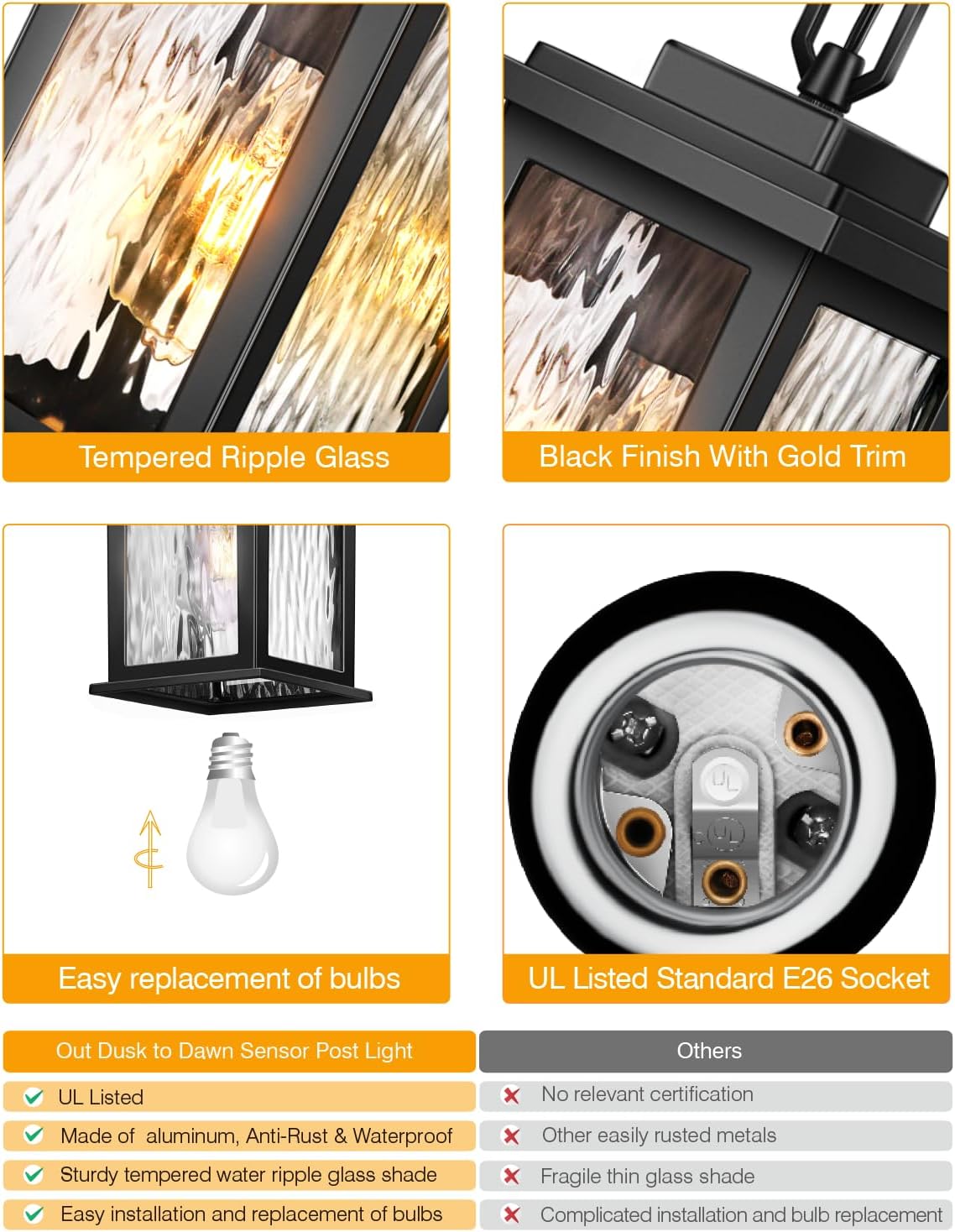 - ✨【Waterproof & Anti-Rust】The outdoor chandelier is made of high-hardness transparent tempered glass and 100% aluminum. It is very strong and durable, and it is not easy to break. Internal super glue and external tough aluminum make it can be used in humid environment without rusting. The modern outdoor lamp also adopts waterproof design, which can effectively prevent moisture from infiltrating into the lamp and has good waterproof performance.