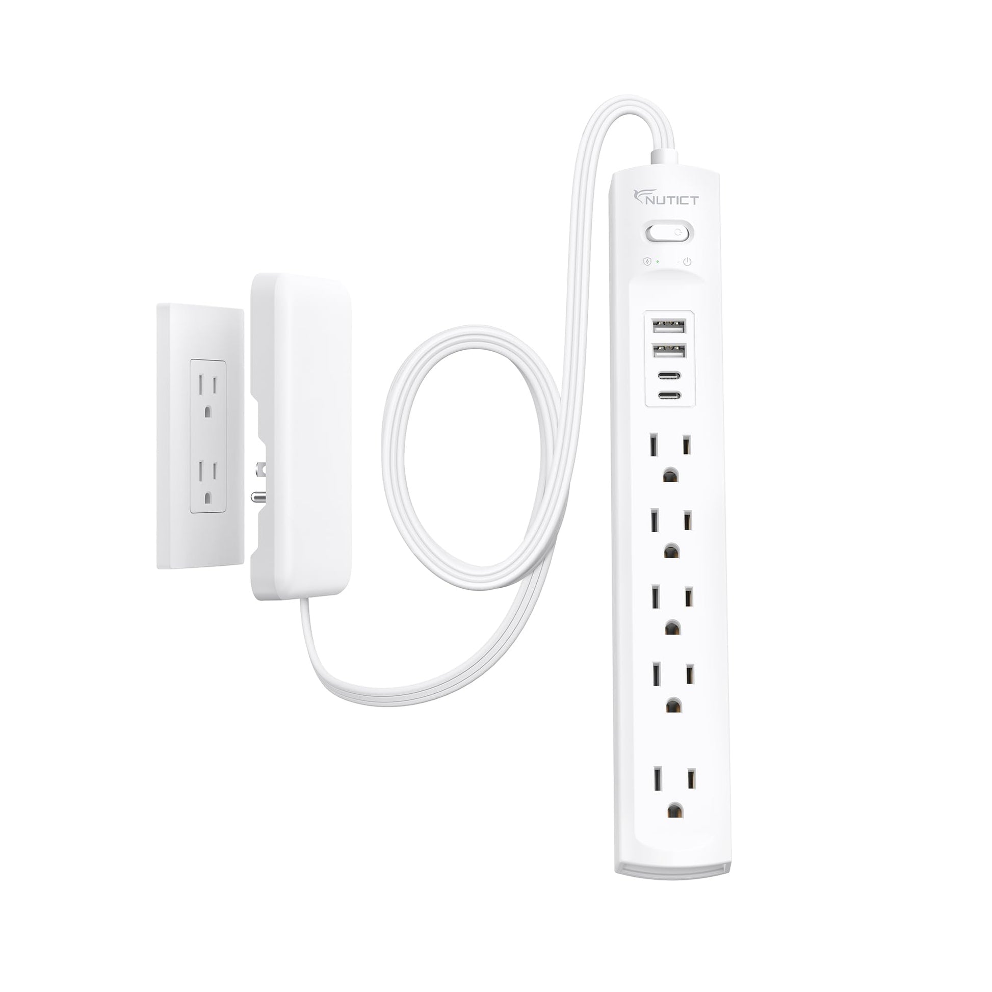 Outlet Cover Extension Cord Flat 6ft, NUTICT Flat Plug Power Strip with 5-Outlet & 4 USB Ports, 1440 Joules Surge Protector, 3 Prong Indoor Extension Cord Flat Wall Plug for Home Office Desk, White