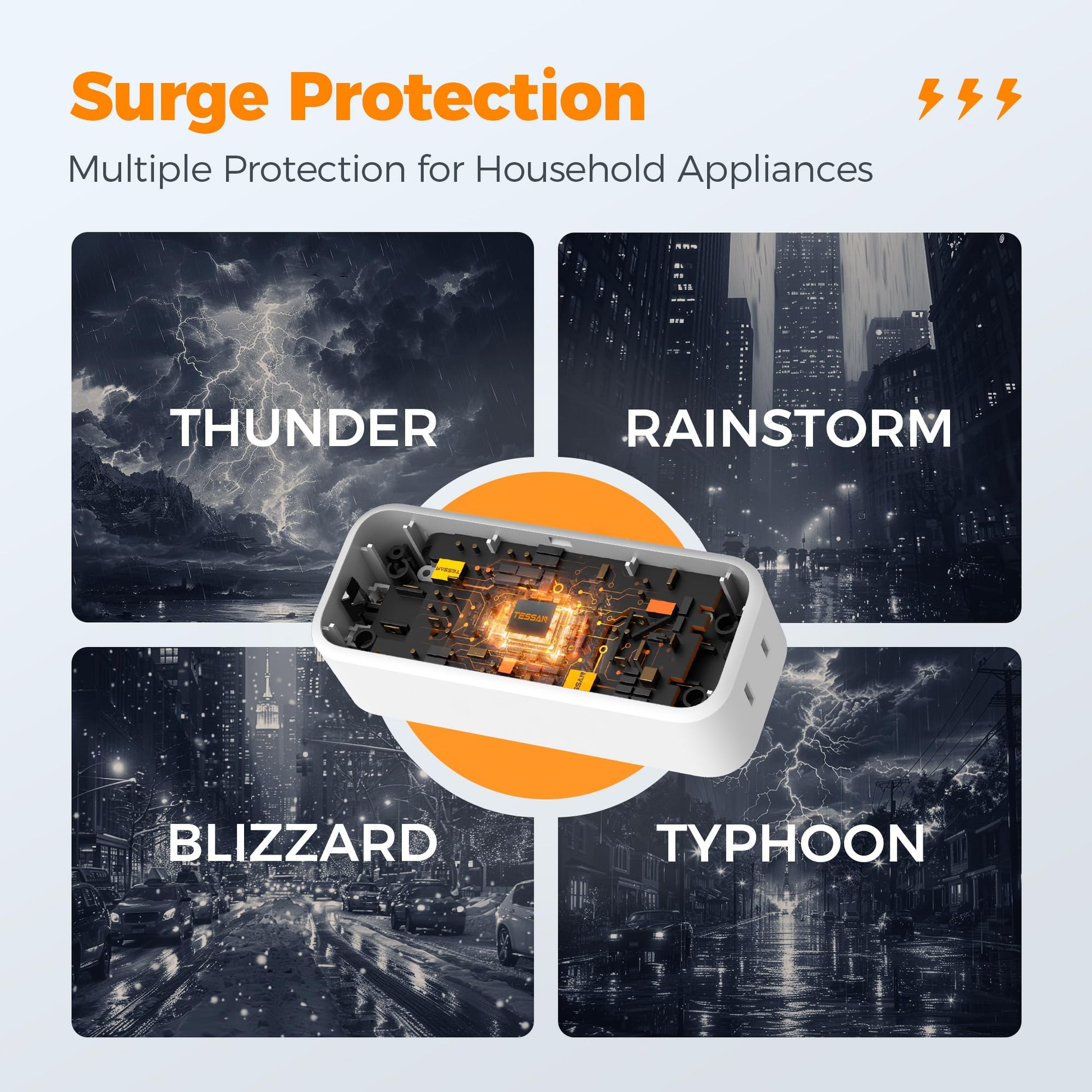 - Surge Protector Outlet: The multi plug outlet surge protector protects your devices, such as computers and other electrical appliances, from power surges and spikes; Multiplug wall outlet providing a secure and dependable charging environment