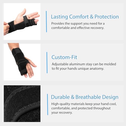 - COMFORTABLE, LIGHTWEIGHT DESIGN: Padded volar and dorsal stays reduce pressure points while keeping the brace breathable for extended wear. This lightweight design offers padded wrist support and ensures reliable protection without the bulk of traditional ring and pinky finger splints.