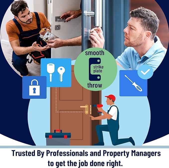 - Perfect Shut, Always - Loved by locksmiths and contractors, our plate eliminates friction and misalignment, preventing drafts and ensuring that the deadbolt fits smoothly into the strike plate hole, and does not catch or jam.