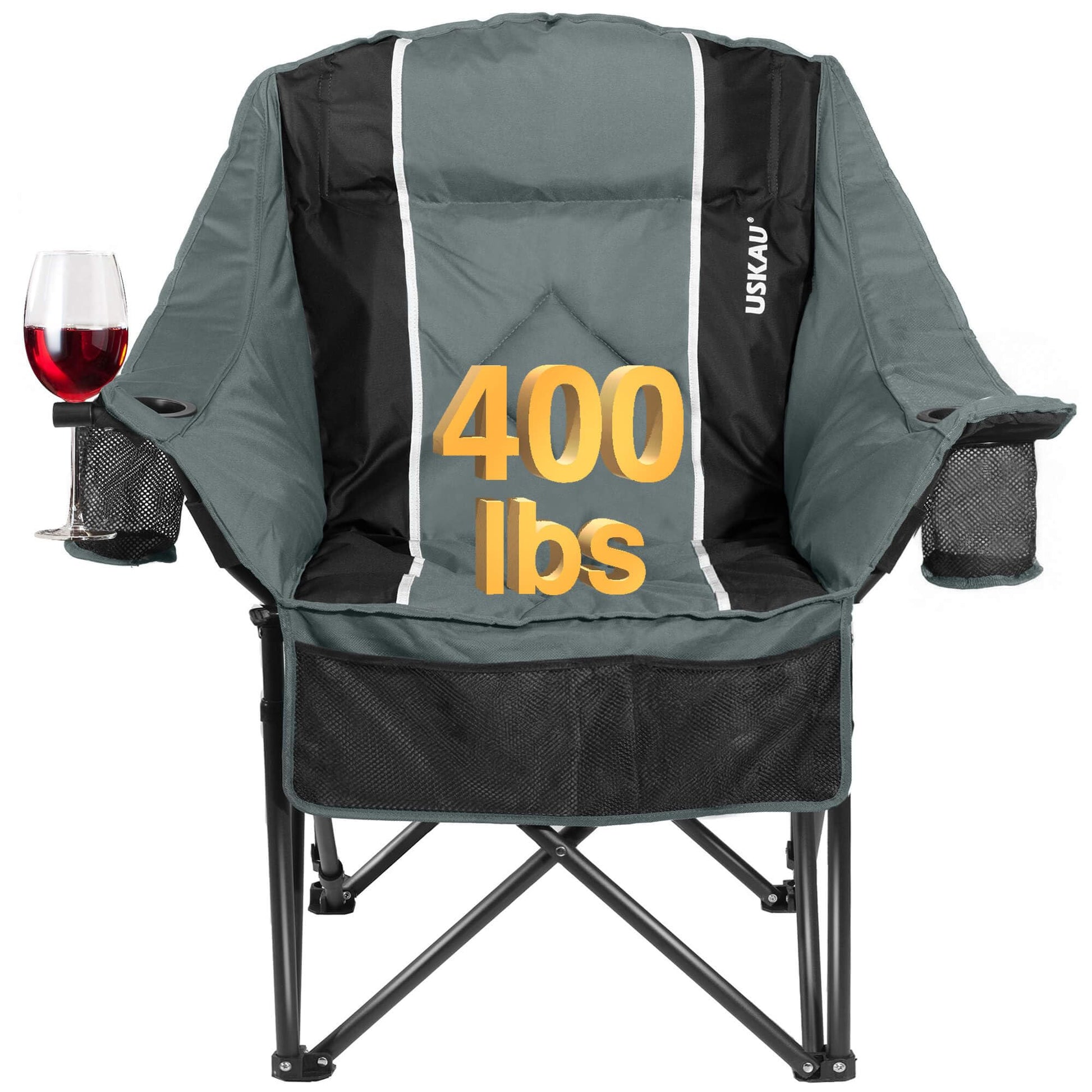 Oversized Camping Chair for Adults - Heavy Duty 400 lbs Padded Folding Chair with Wine Glass Holder, 2 Cup Holders & Side Pockets, Portable Carry Bag for RV, Tailgating, Lawn