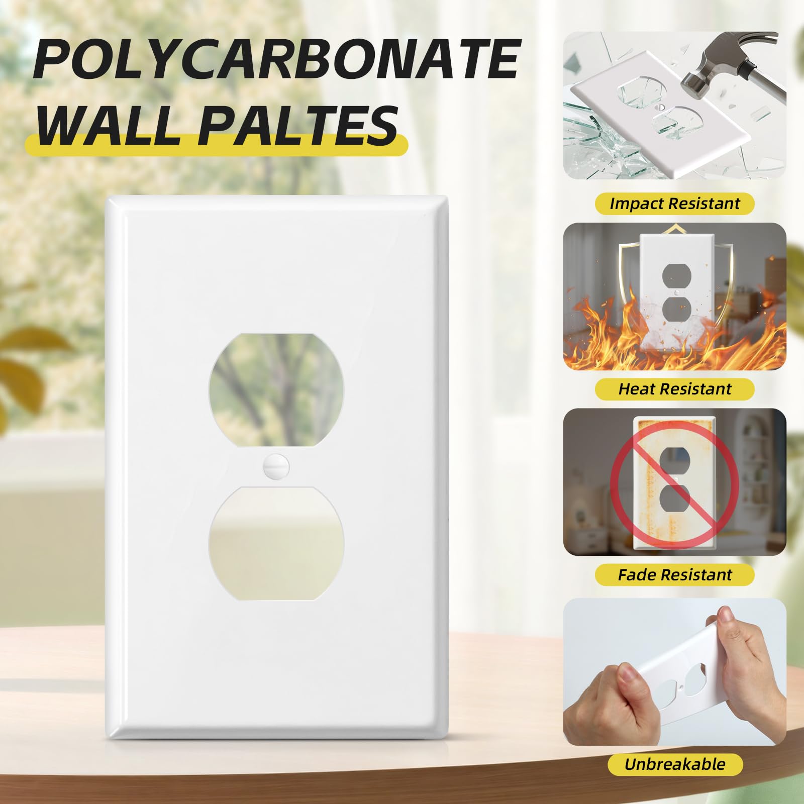 - Premium Quality: Jumbo electrical outlet covers made of durable polycarbonate thermoplastic material for enhanced strength, flexibility, and resilience. Built to withstand heavy impacts, pressure, high temperatures, and fading.