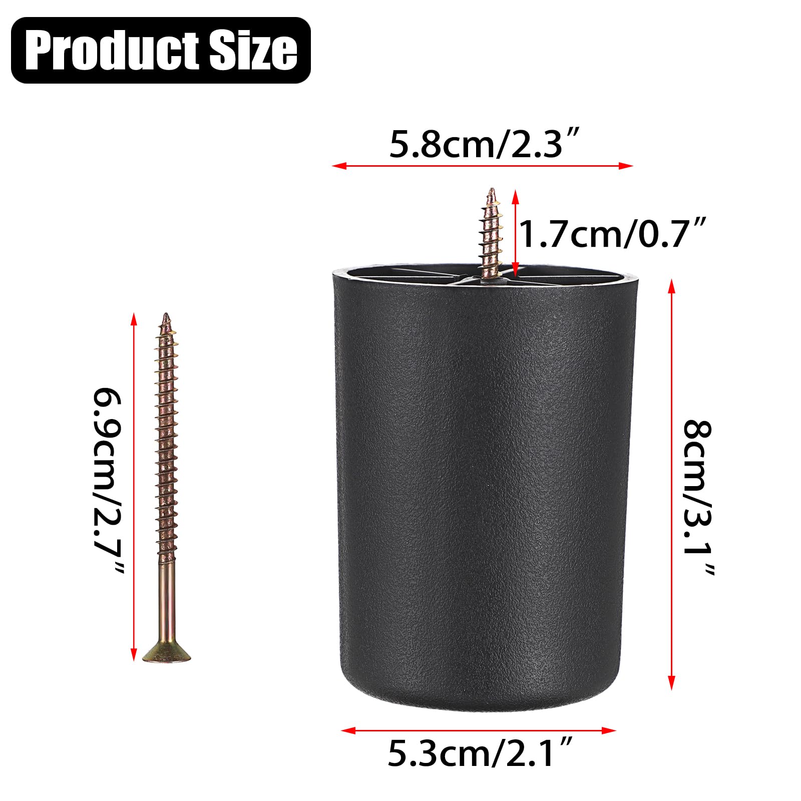 - Package includes 4 x Plastic Sofa Legs and 4 x Mounting Screws, each furniture leg has pre-drilled holes, easy and convenient to install or disassemble; Total height is 8cm / 3", the diameter of the mounting plate is 5.8cm / 2.3" and the diameter of the base is 5.3cm / 2.1".