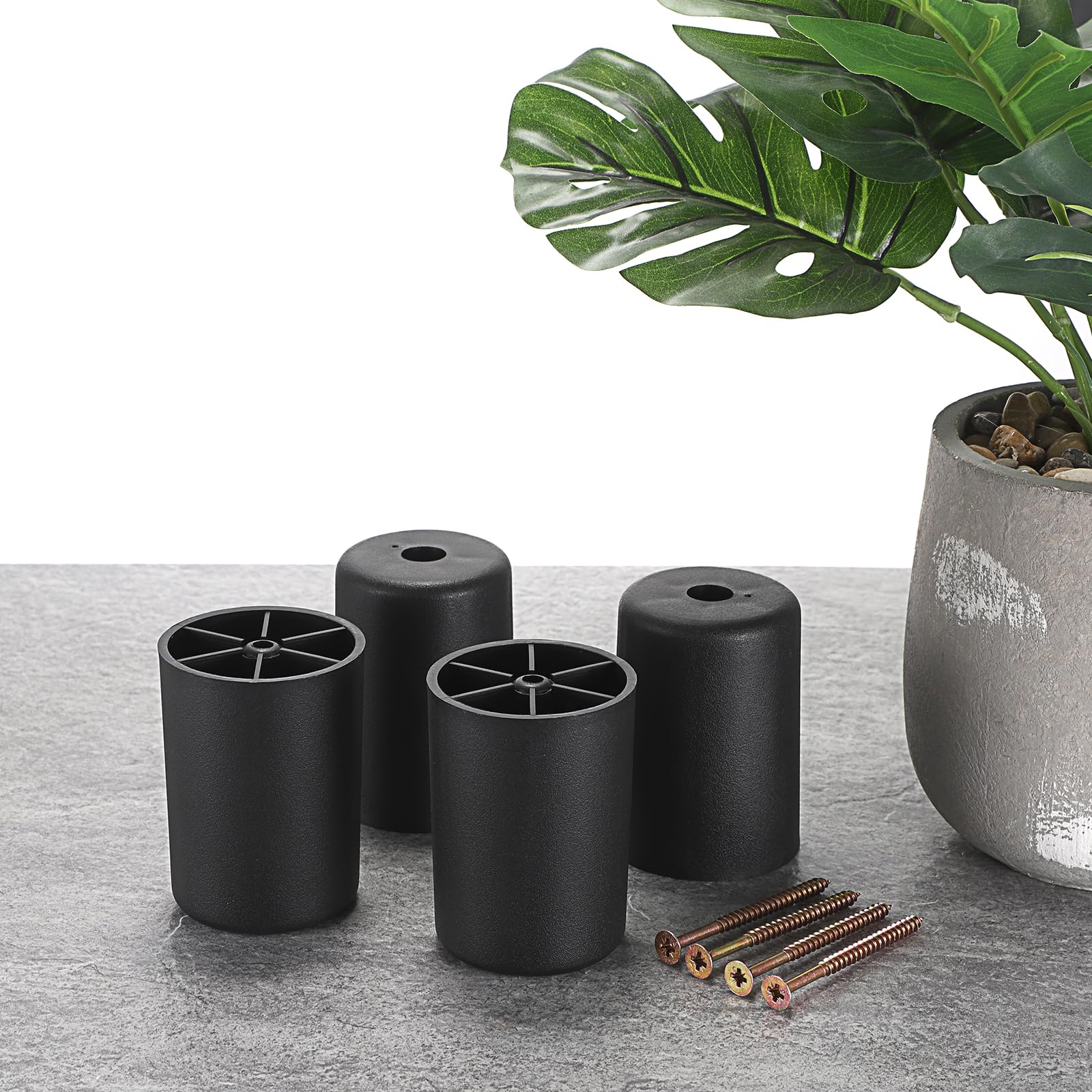 - Cylinder shaped furniture legs with screw mounting hole design fit for firm installation, provides 3" height increase for furniture, non-slip solid bottom will make it stand stably and prevent your floor from scratch or damage.