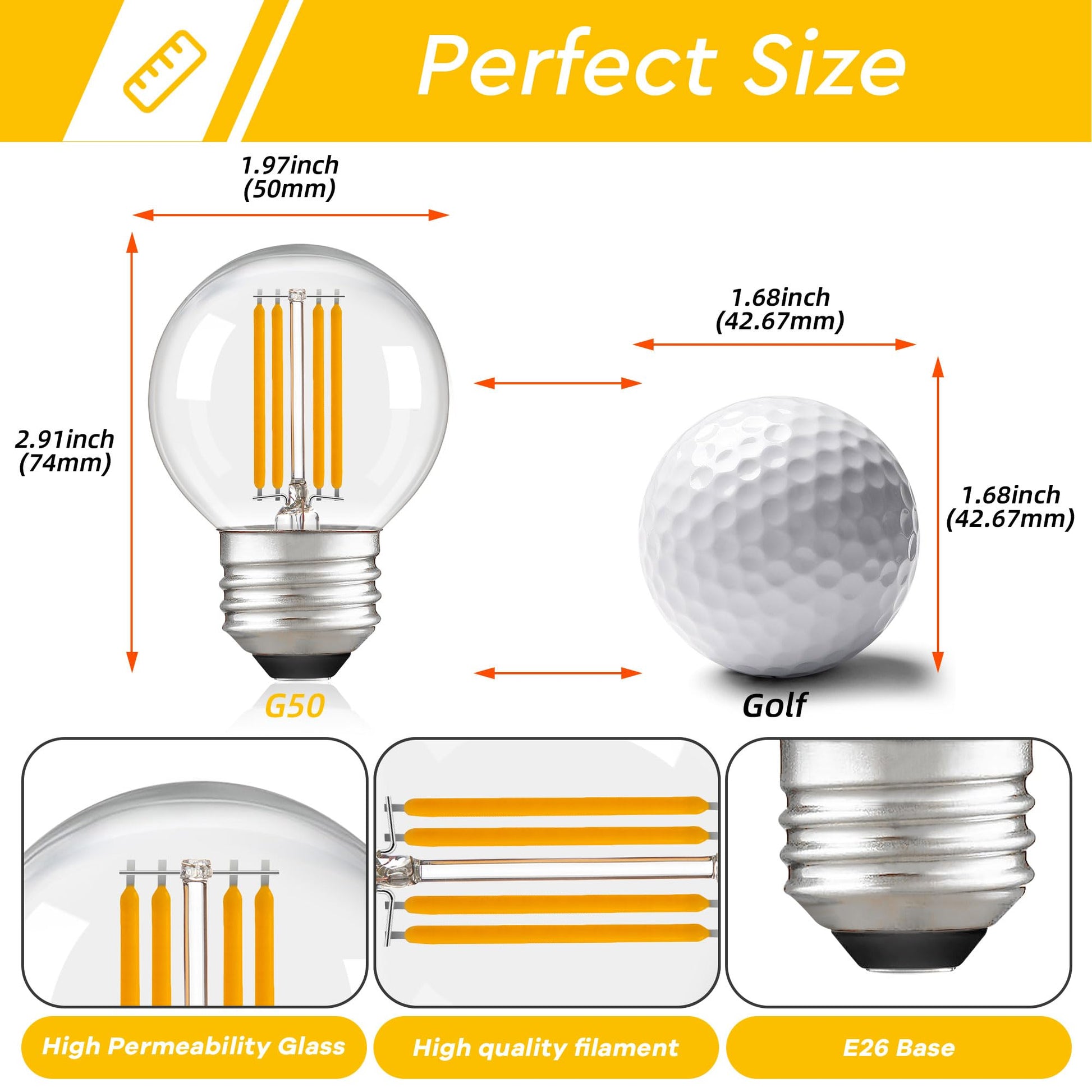 - 【High - Quality and Durable Design】:Built with a ceramic substrate, vacuuming, and charged helium, our g50 e26 base led light bulbs are safe and reliable. They turn on instantly and have a 360 - degree beam angle, providing even light. With features like overload protection, short - circuit protection, and over - temperature protection, they're a great choice for your home. They also have a high CRI, bringing out vivid and natural colors.