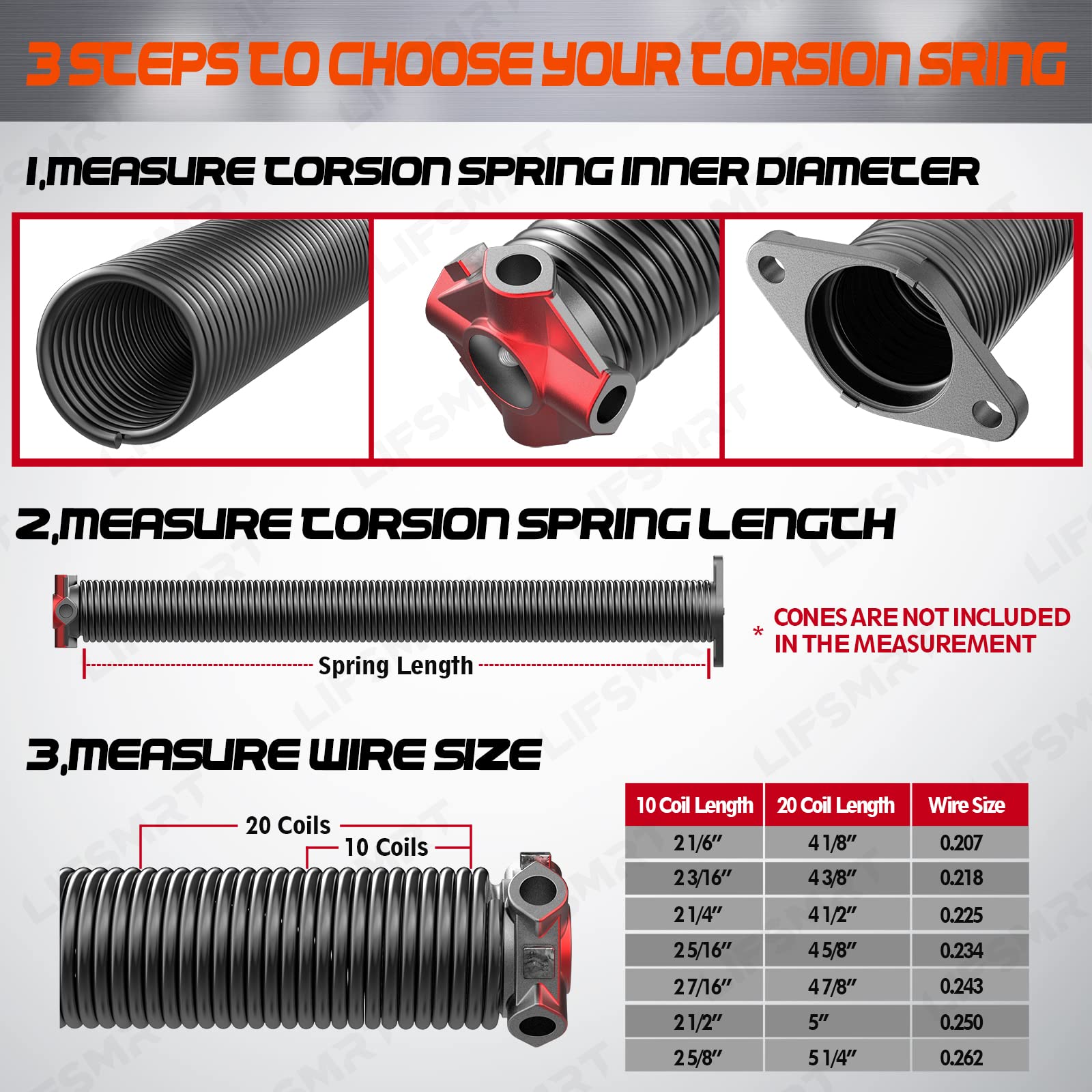Details: LIFSMRT Heavy Duty Garage Door Torsion Spring Replacement Set(.234’’X2’’X30’’) with Pair of Winding Bars