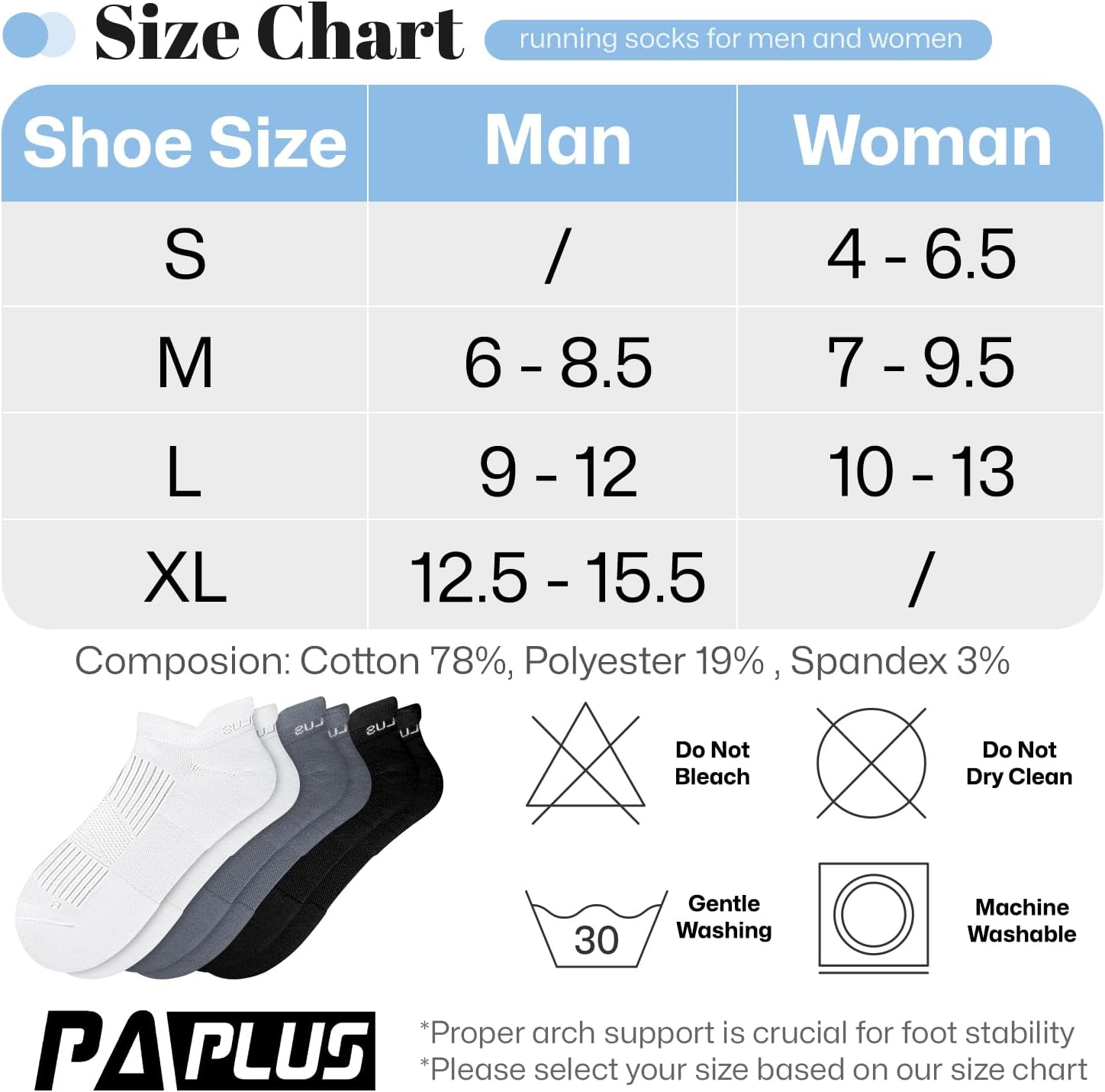 - 【Premium Combed Cotton - All-Day Comfort】: Our mens running socks are made of premium combed cotton make running socks fabric more comfort, uniform and less prone to pilling or deformation, and blended with durability and elasticity material( polyester+spandex), balancing support and comfort of PAPLUS socks, making them more breathable and durable than pure cotton or synthetic fiber socks. Suitable as the first choice for outdoor activities and daily commuting