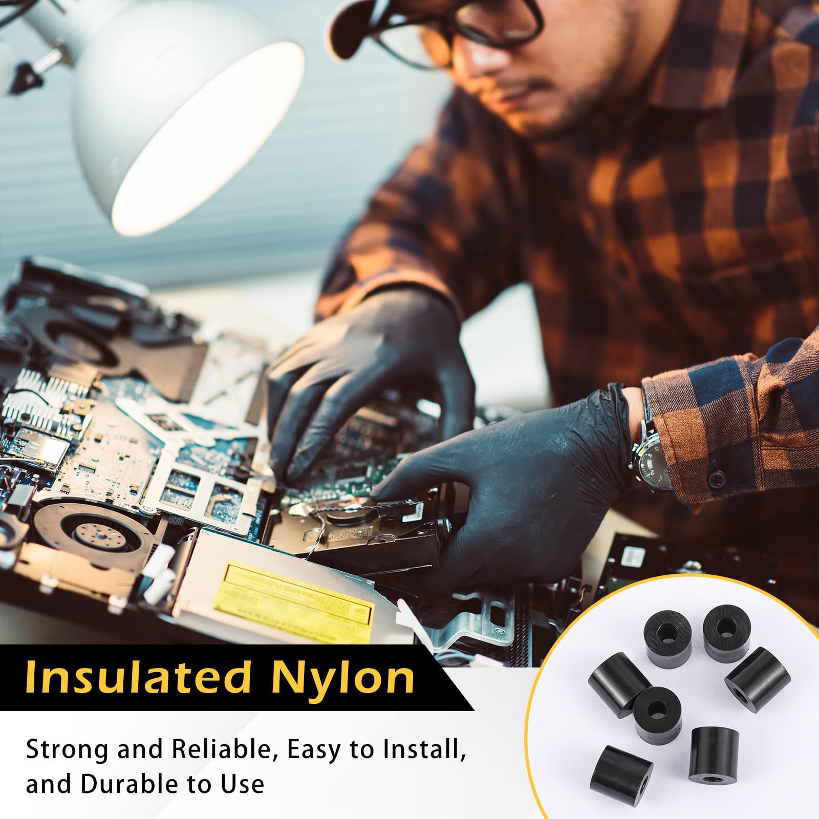 - Quantity and Quality: adorned in classic black, these 100 nylon spacers are crafted from quality insulating material that ensures longevity; Tough and wear resistant, these resilient nylon spacers aren't easily breakable or deformable, ensuring long lasting applied