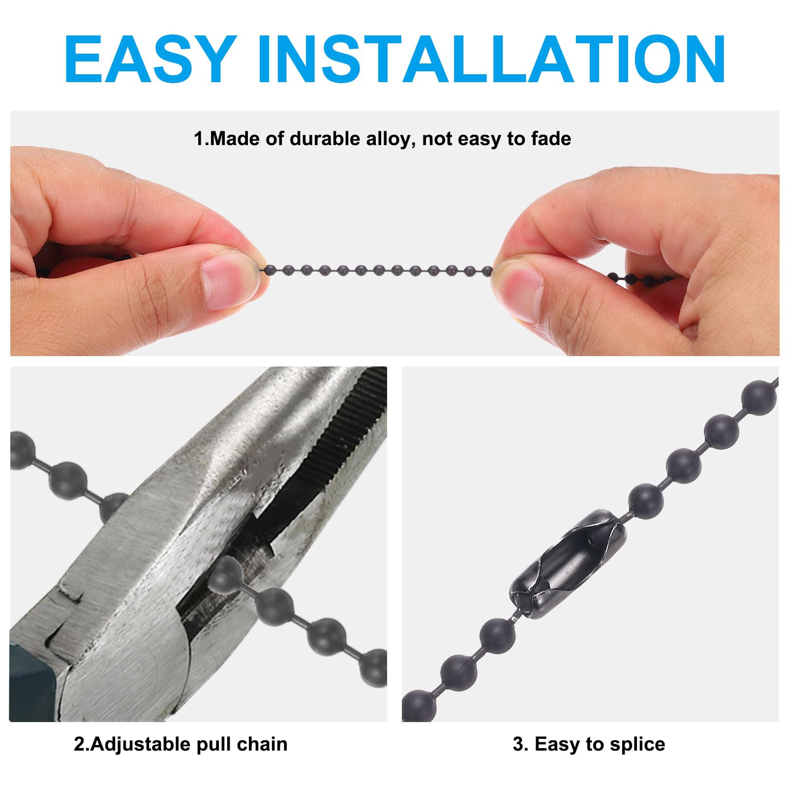- Instruction: Simply attach the pull chain to your ceiling fan or light fixture, easy and convenient control of your ceiling fan. A ceiling fan pull chain extender is suitable for most ceiling fans, making it a versatile and practical addition to your home.