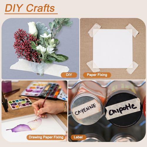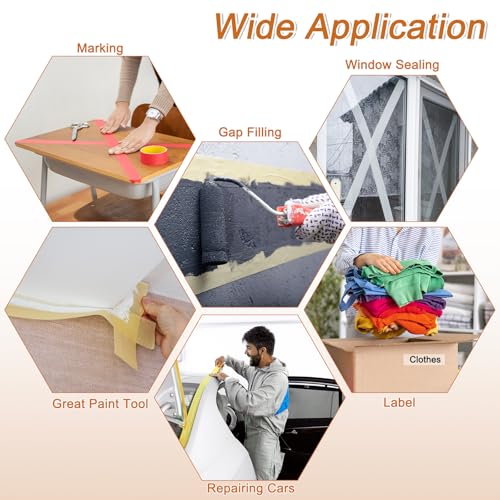 - Application: These professional painter tapes are widely used in paper painting, outdoor wall painting, home wall decoration, marking, trimming, caulking, wrapping, marking, color-blocking creating, automotive, spray painting, edge treatment, etc. Also can be used to post paper, and photos or used as labels. They can be pasted on smooth or lightly textured walls such as tile, glass, metal, ceramic tiles, hardwood floors, paper, or plastic.