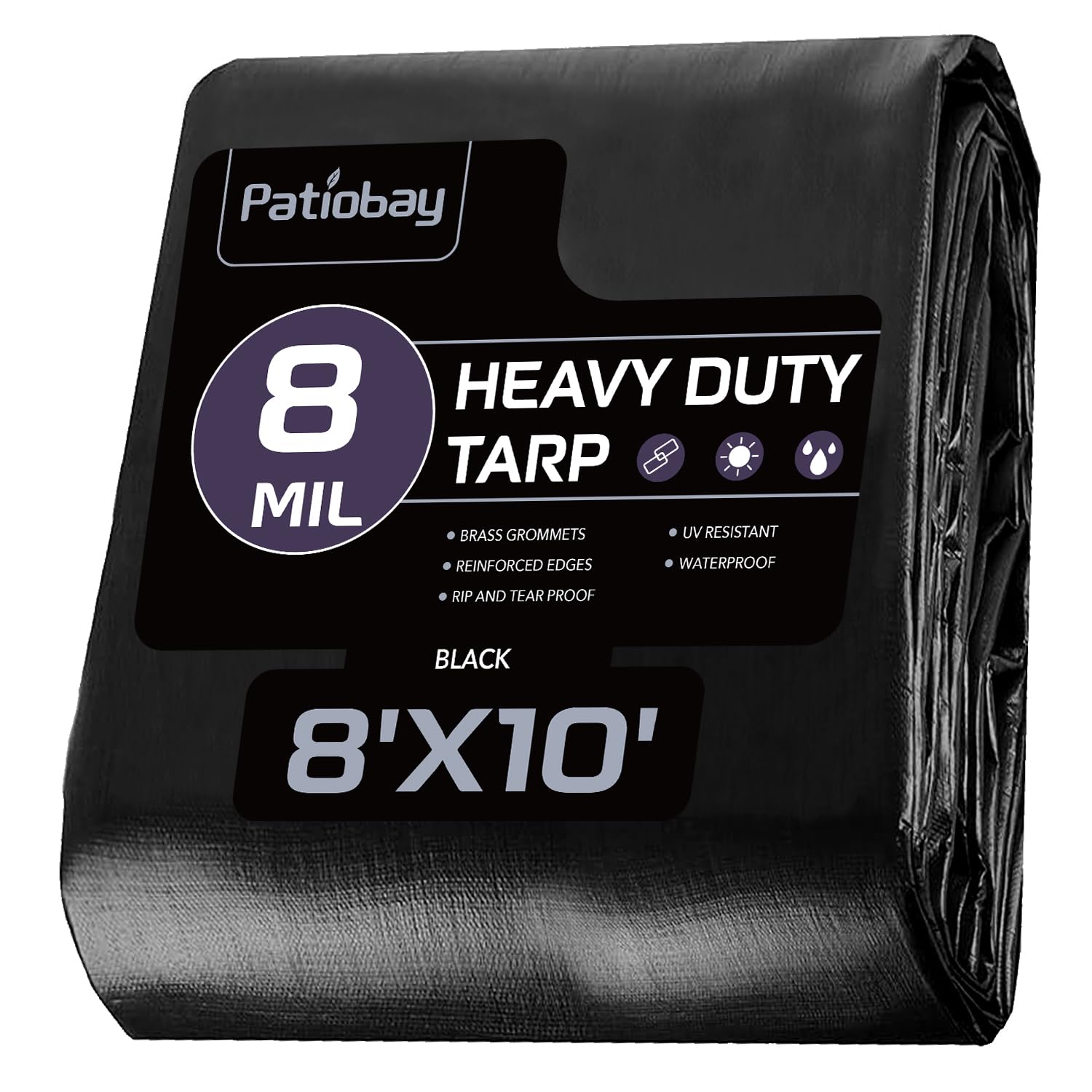 Patiobay Tarp 8x10 Feet, 8 Mil Waterproof Tarps Heavy Duty with Grommets Every 23.6", Thick Plastic Tarp, UV Resistant Tear&Fade Resistant, Reinforced Edges for Outdoor Pool Camp Tent