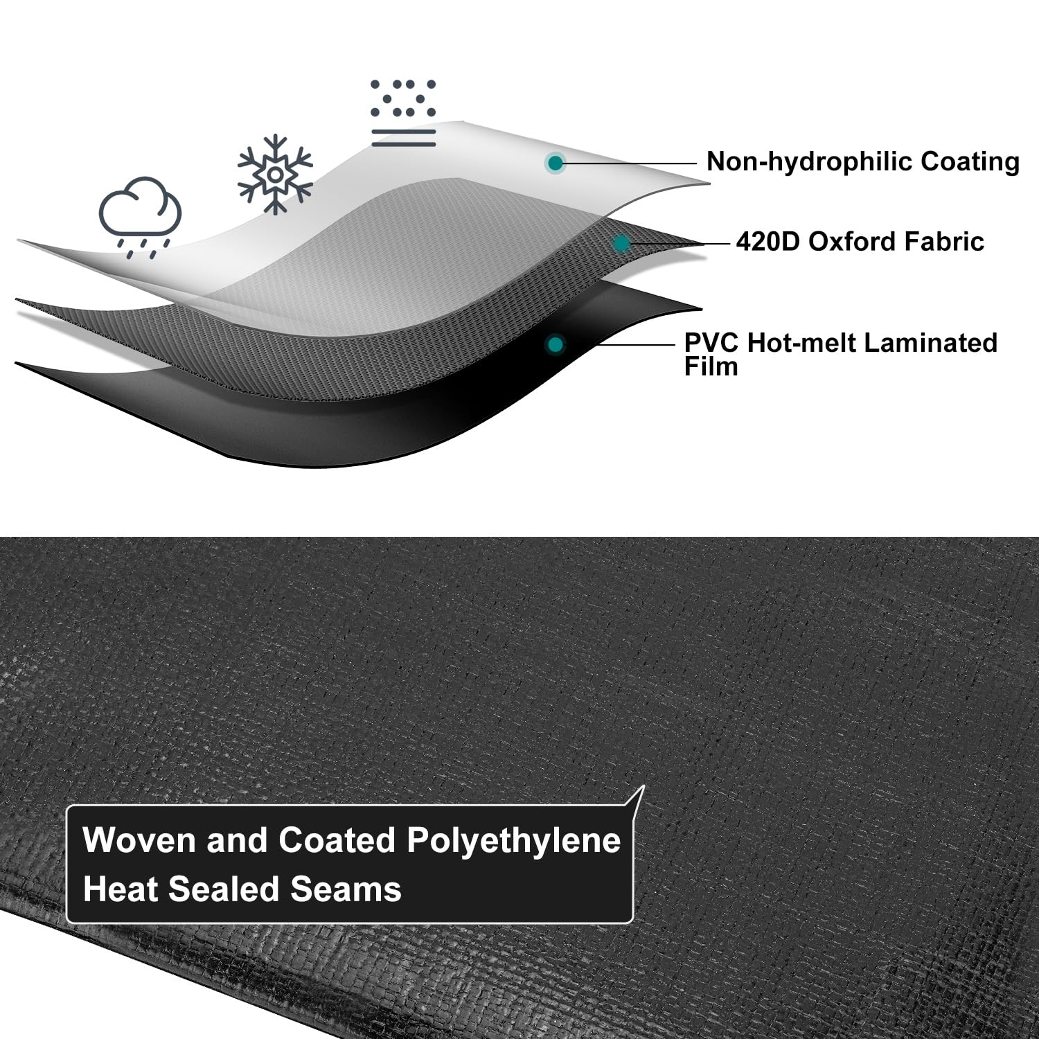 - 100% VIRGIN POLYETHYLENE: Made of high quality polyethylene that can withstand heavy use and harsh weather conditions. From heavy rain to scorching sun, Patiobay tarp won't let you down. Its waterproof and UV-resistant design ensures that your valuable possessions stay safe and dry, year-round