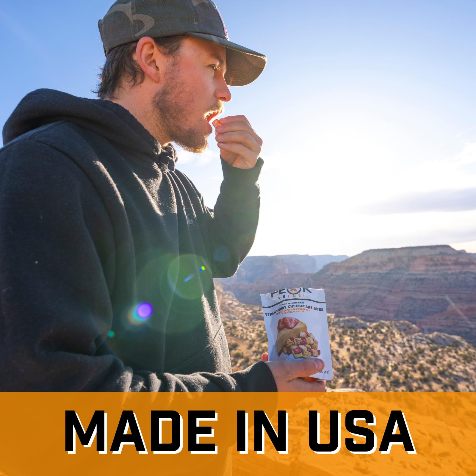 - Amazing Taste – Peak Refuel Cheesecake Bites bring all the creamy, indulgent flavor to the trail with none of the mess! Slip a few pouches in your pack and your sweet tooth is set.