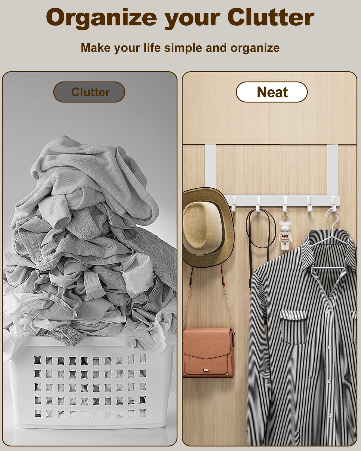 - Modern Design - Designed with a sleek finish, this over-door hook rack complements any home decor style. The minimalist design makes it an ideal addition to bedrooms, bathrooms, or entryways.