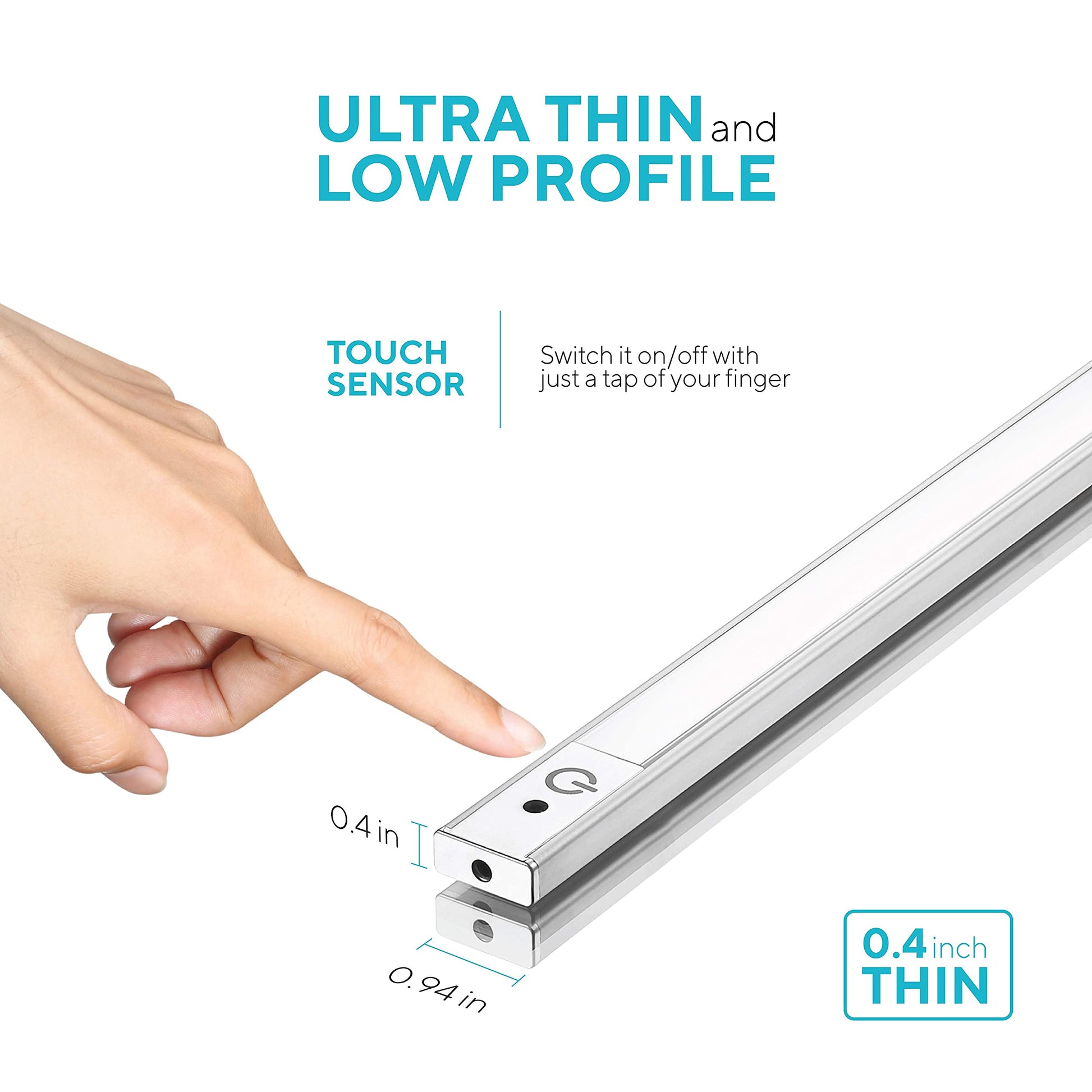 - FREEDOM OF CHOICE! You are welcome to choose between 12 inch, 24 inch, 36 inch and 48 inch under cabinet lights and two different colour temperatures: Warm White 3000K and Neutral White 4000K. Super bright LED and sensitive touch LED sensor makes these light bars way better traditional lights.
