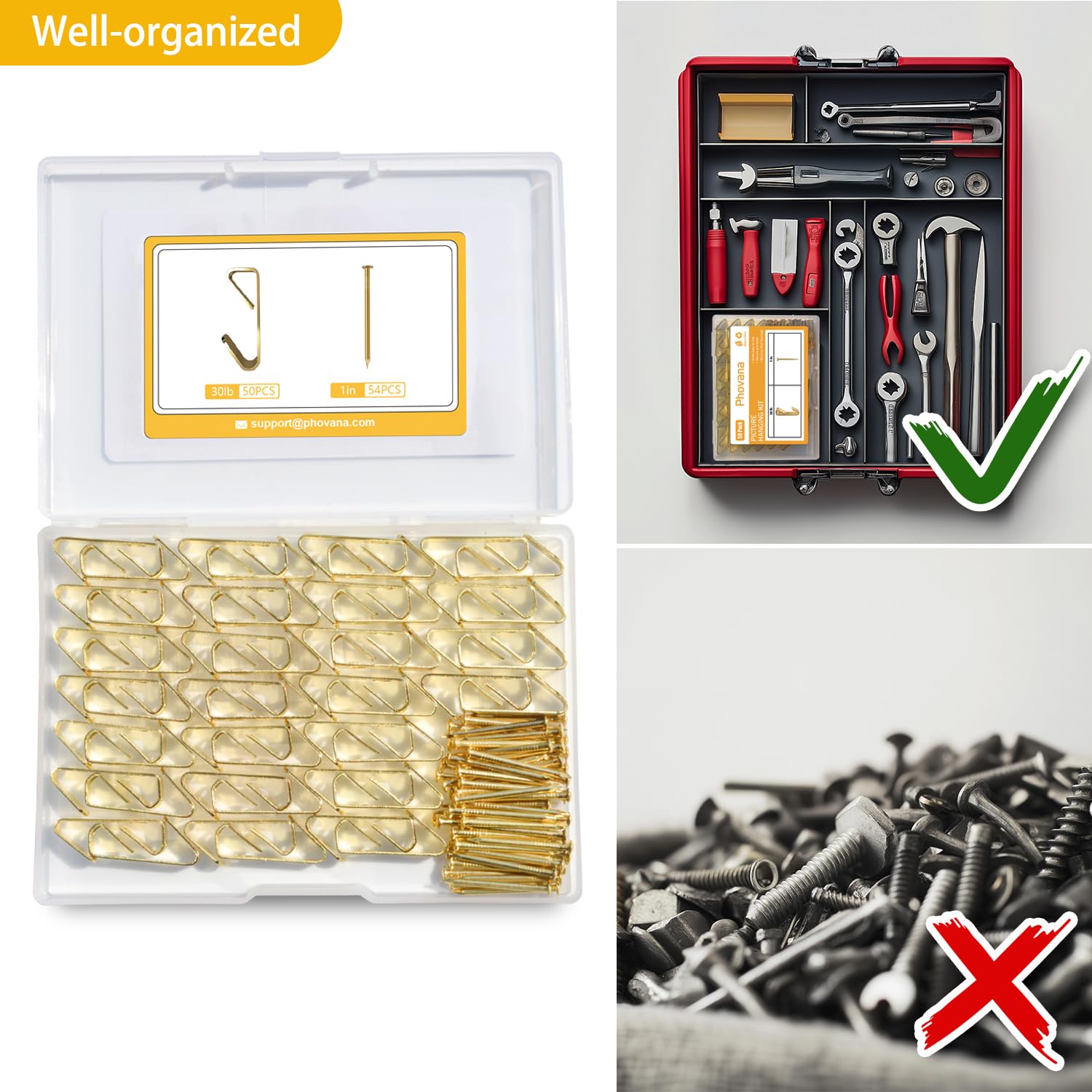 - [Properly Sorted in a Clean Box]: The Picture Hooks come neatly organized in a high-quality plastic case, making it easy to access and find the right pieces quickly.