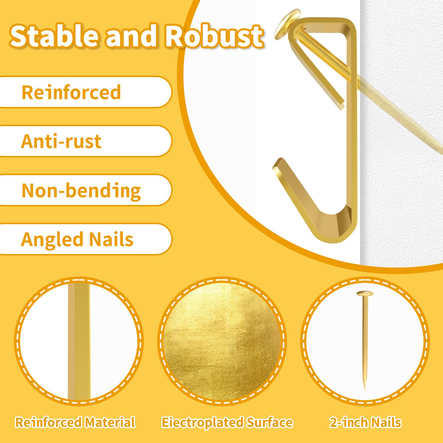 - [Premium Quality and Highly Robust]: Crafted from sturdy materials, this Picture Hanging Hooks kit is designed to be durable and reliable, allowing you to hammer them into drywall with confidence as they won’t bend, ensuring long-lasting performance on any wall.