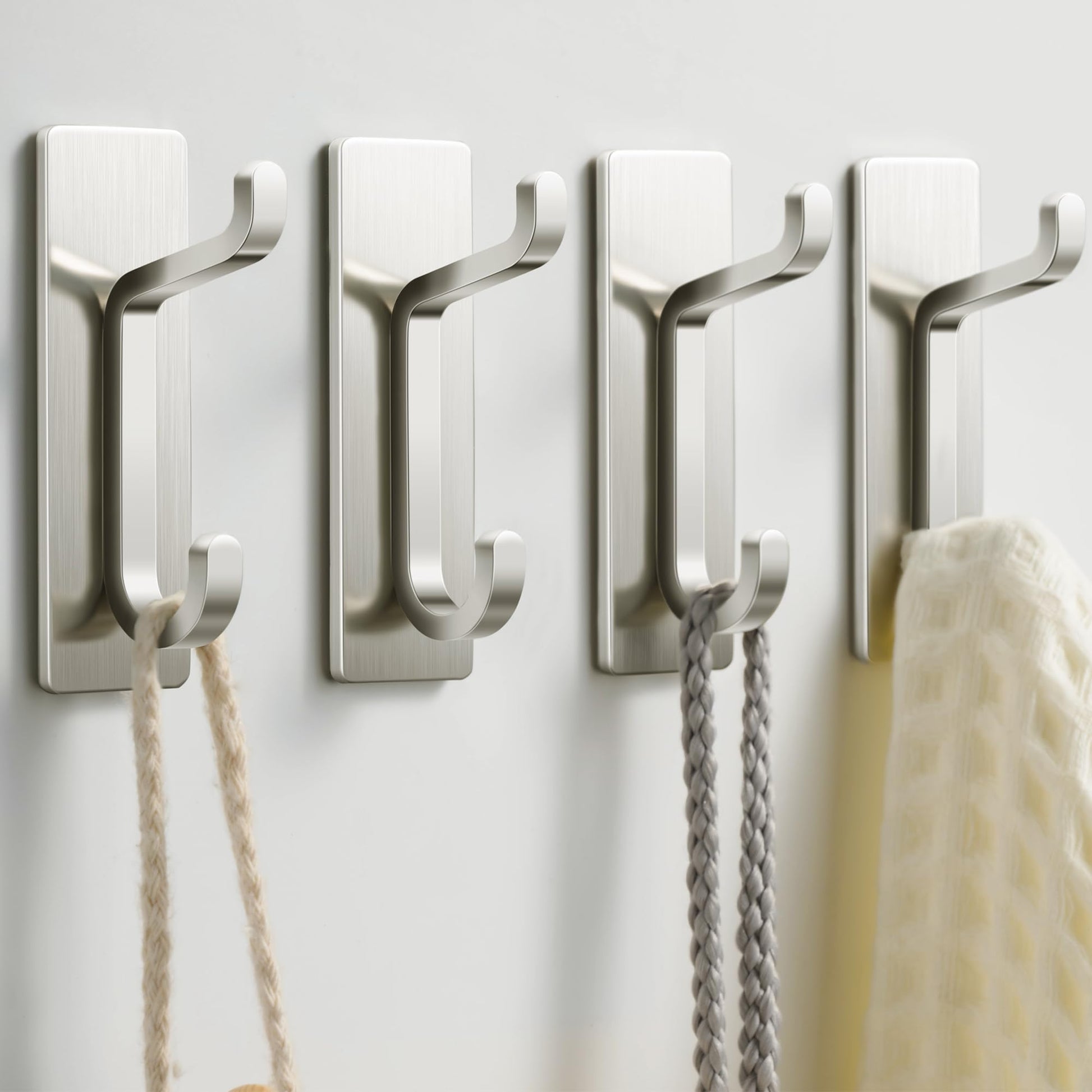 pickpiff Wall Hooks for Coat and Towel: 13LB Adhesive Door Hanger Stick on, Brushed Nickel