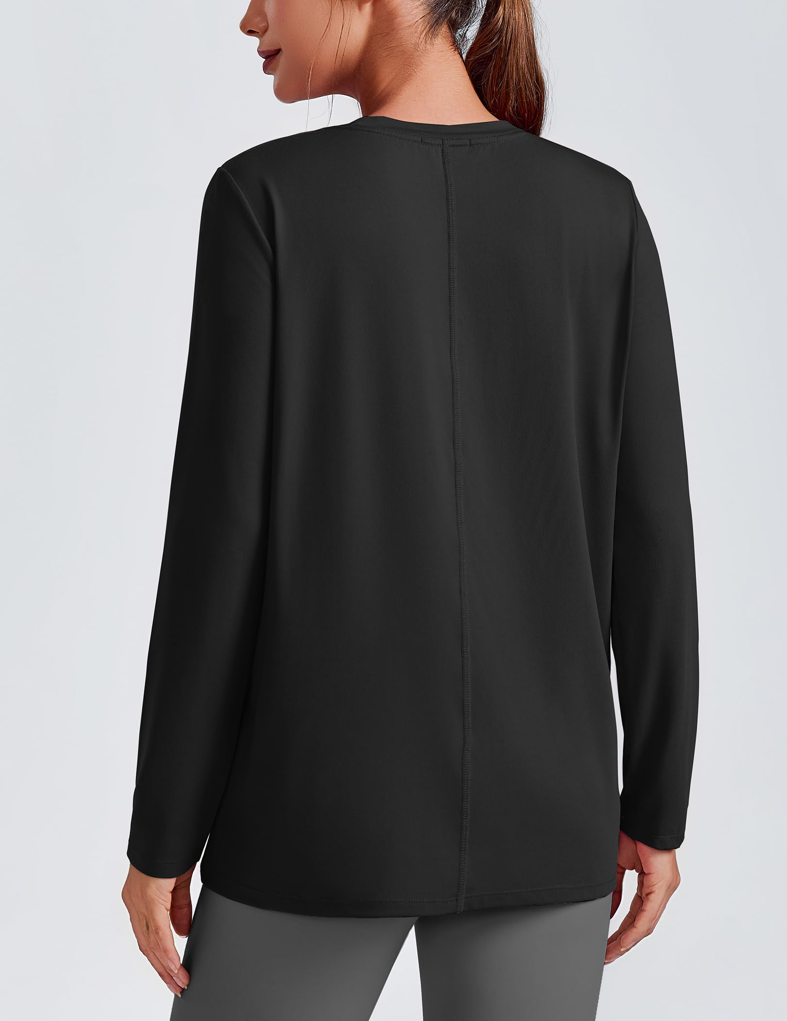 PINSPARK Long Sleeve Workout Tops for Women Solid Athletic Shirts Lightweight Yoga Shirt Stretchy Running Top Loose Fit, Black Large