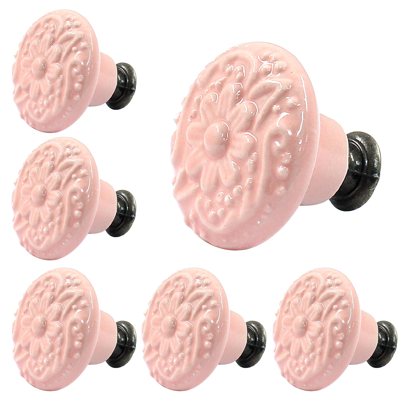 Piutouyar Ceramic Kitchen Cabinet Knobs, Pink, 10Pcs, 1.3Inch Diameter, Retro Style