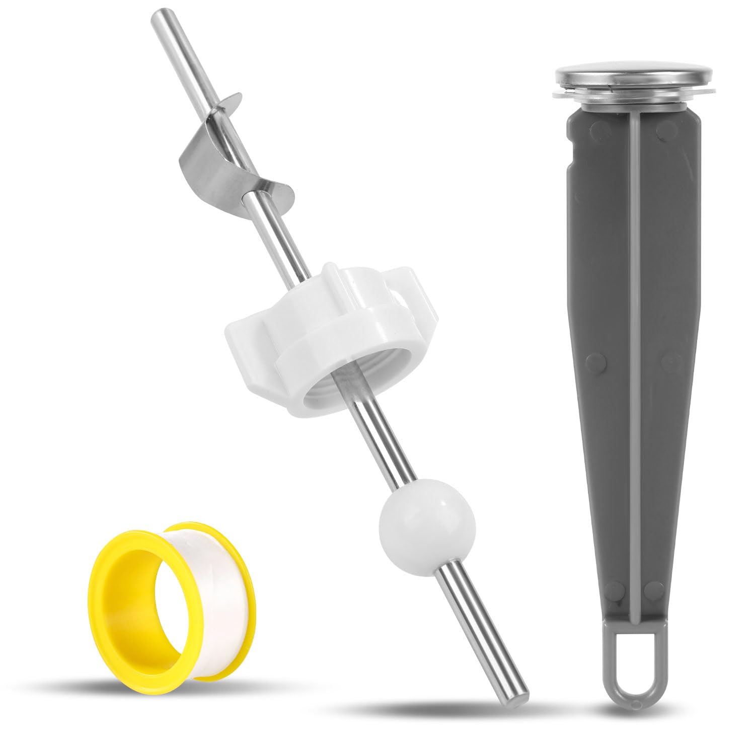 - Product Information: You will receive one piece of sink drain parts, bathroom sink pop up stopper, one lavatory pop up center assembly and one Teflon tape. The sink drain stopper can plug the sink to prevent draining, good sealing effect, and ensures without leakage; the metal pop-up bar connects the stopper to the lift rod and allows the stopper to open and close.