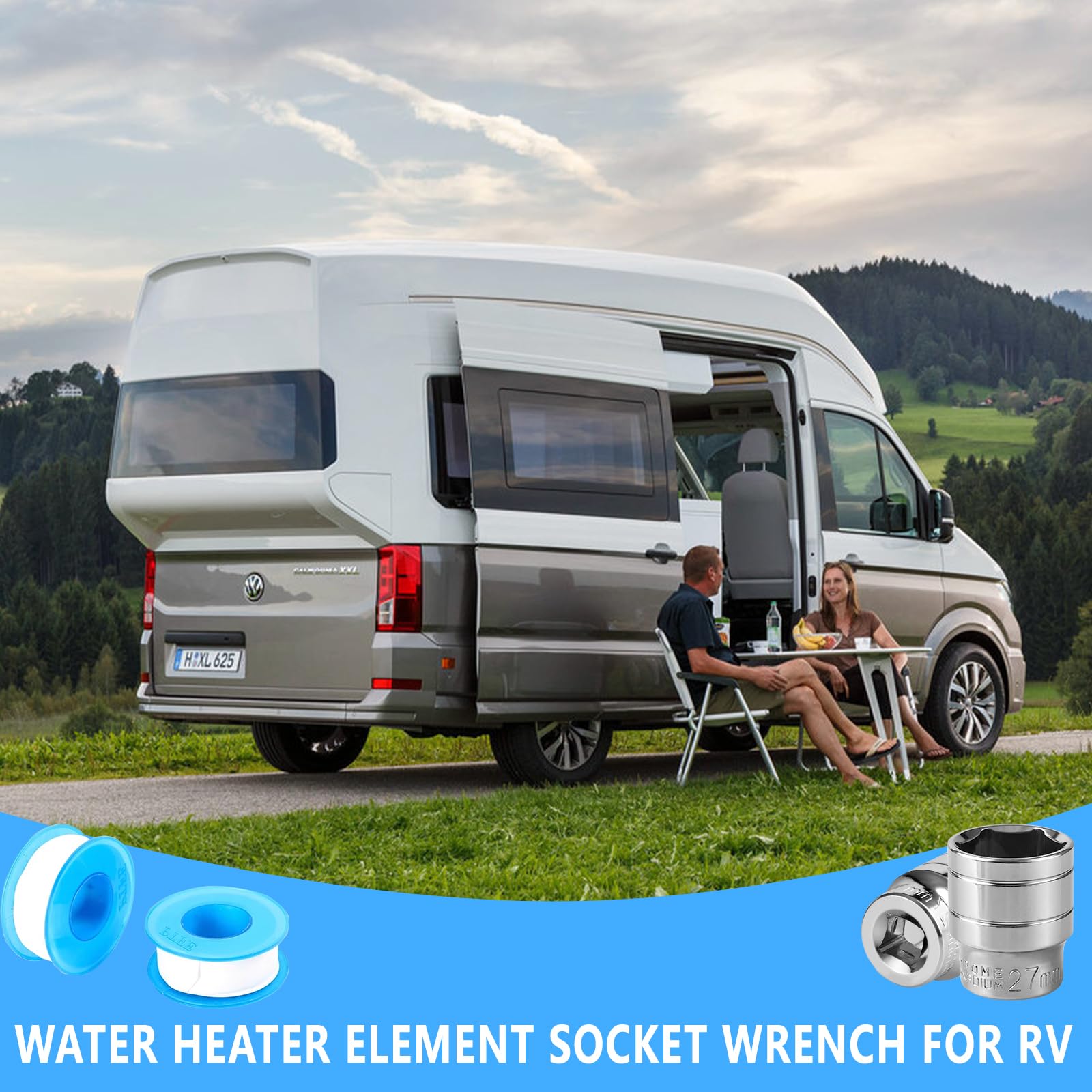 - For tight spaces: Socket tool efficiently removes or replaces all RV screw-in water heater elements with 3/4" NPT Thread.