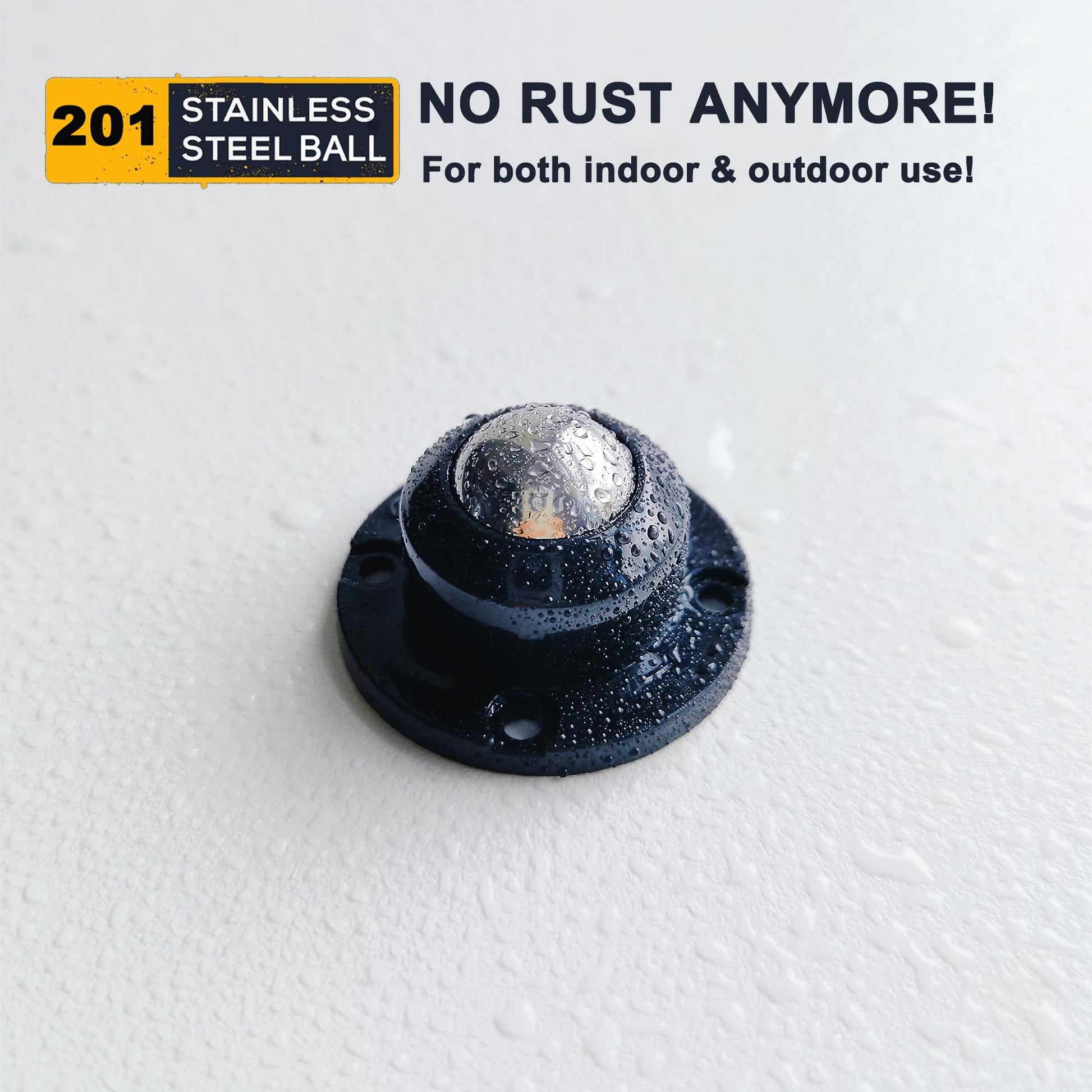 - 【Low Profile & 360 Degree Rotation & No Rust】 Swivel Wheels loaded with 201 STAINLESS STEEL BALLS which won't get rust, suitable for both indoor and outdoor usage. Low profile casters won't raise too much height and yet can support a good amount of weight. Larger steel ball in ABS bracket rolls more smoothly compared with other small balls.