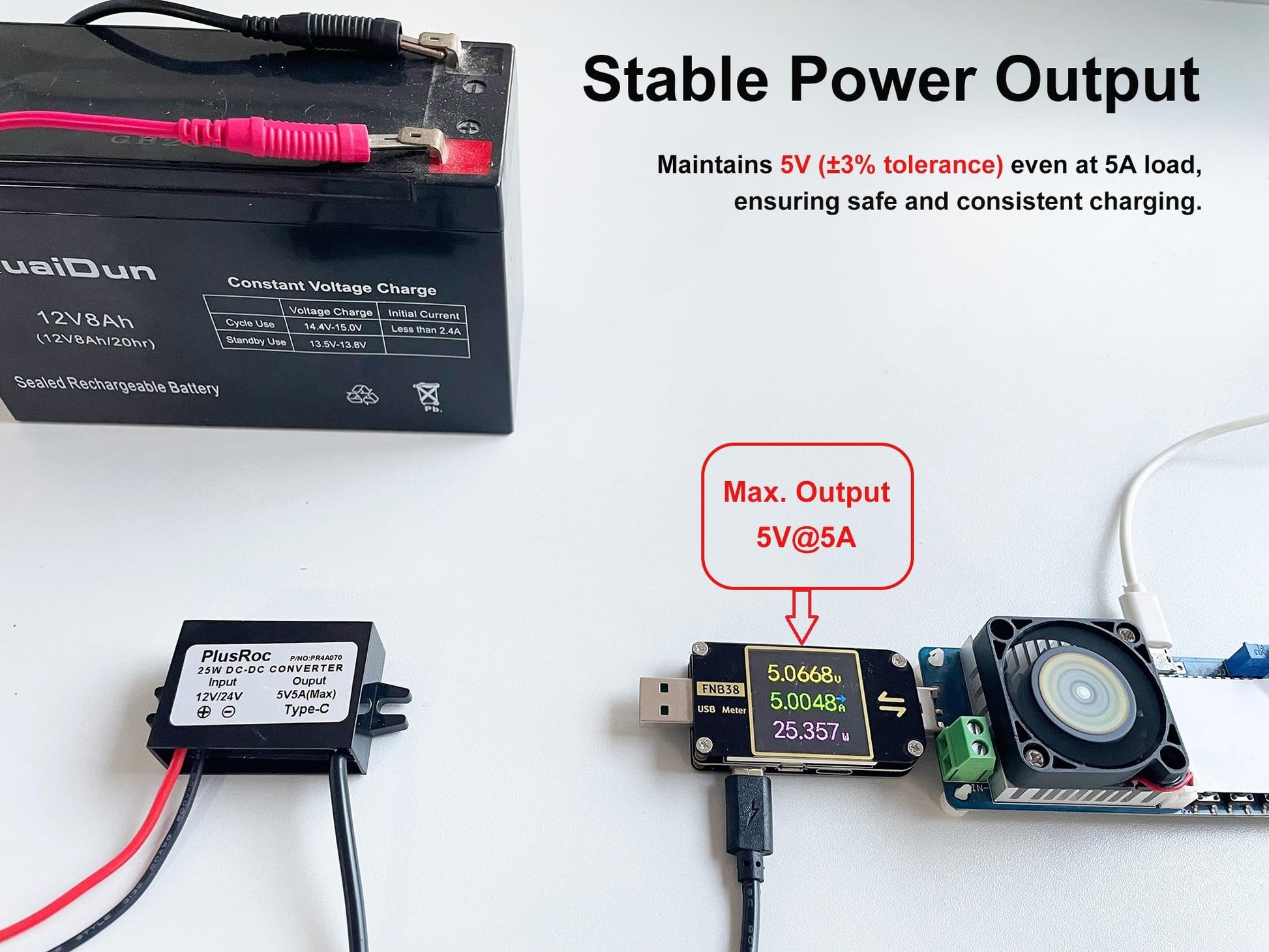 - Maintains a steady 5V output(within ±3% tolerance)even at full 5A load, fully compatible with Raspberry Pi, smartphones, tablets, and other 5V devices.