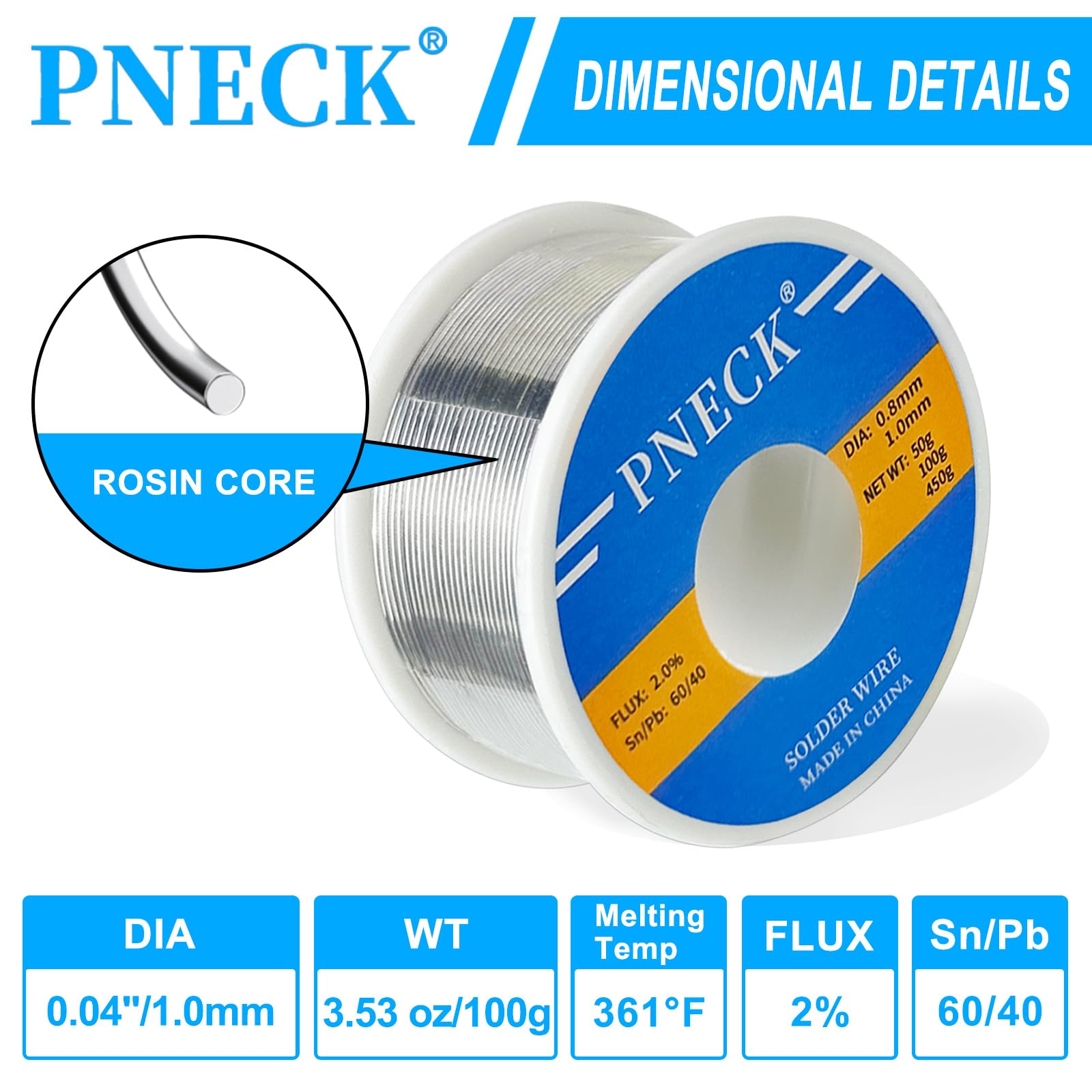 PNECK 60/40 Tin Lead Rosin Core Solder Wire for Electrical Soldering, 0.04" 3.53 oz (1.0 mm 100 g)