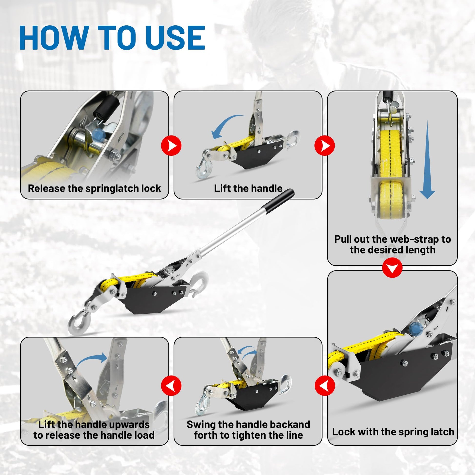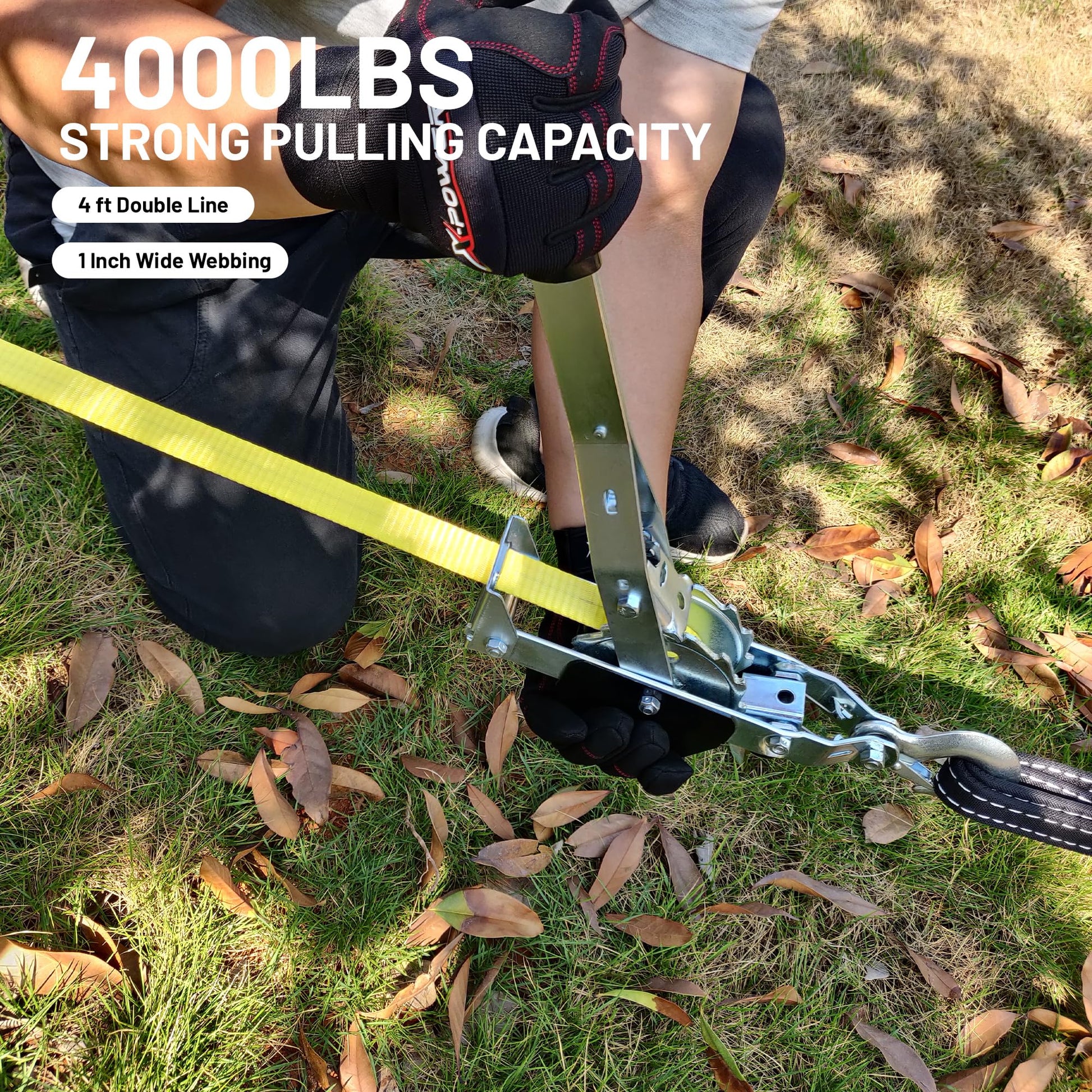 POLESTAR Come Along Winch, 4000 lbs Pull Capacity, 4 ft Winch Strap, Hand Winch with 2 Hooks, Heavy Duty Dual Ratchet Cable Winch Puller, Automotive Towing Hoist Puller for Recovery, Moving, Securing
