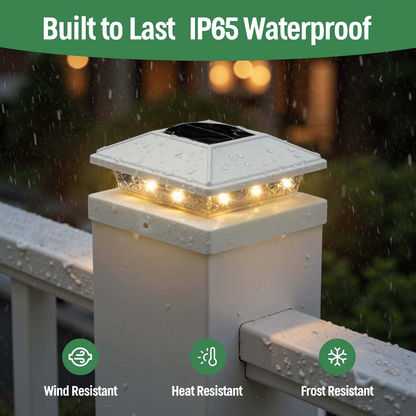 - Durable & Waterproof: Built to last with an IP65 rating, these lights withstand rain, snow, and moisture, ensuring your fence and deck posts are beautifully lit in all weather conditions year-round