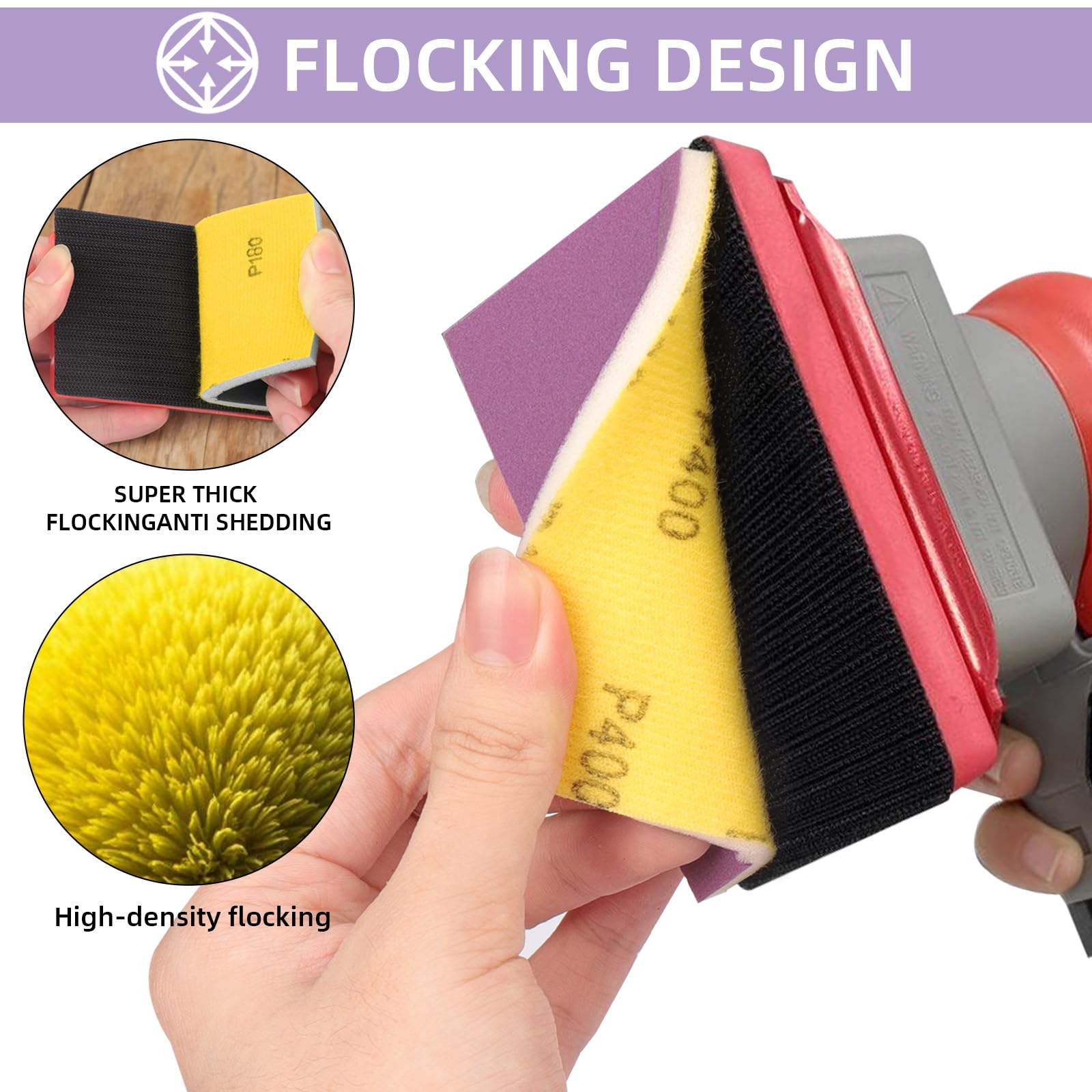 - Flocking Design: These sanding sponges have a cozy red velvet backing, a soft sponges sandwich that provides a comfortable grip and reduces wrist fatigue, and a red flocked backing that can be adhered to a sanding block or sander pad for quick and easy use.