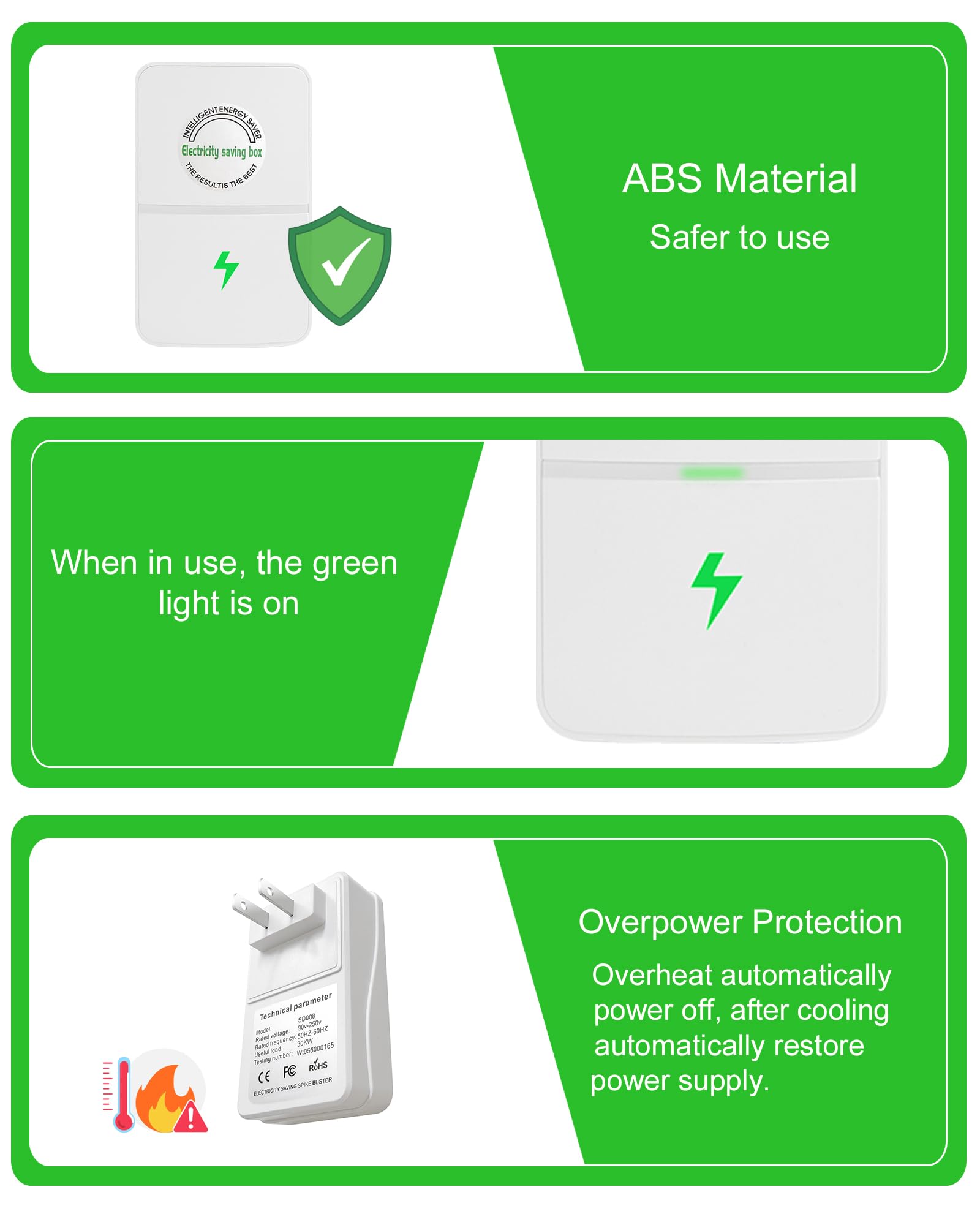 - 【Simple to Use】 This electricity saving device comes with an LED indicator. Just plug it into any power outlet—once the green light turns on, you’ll know it’s working.