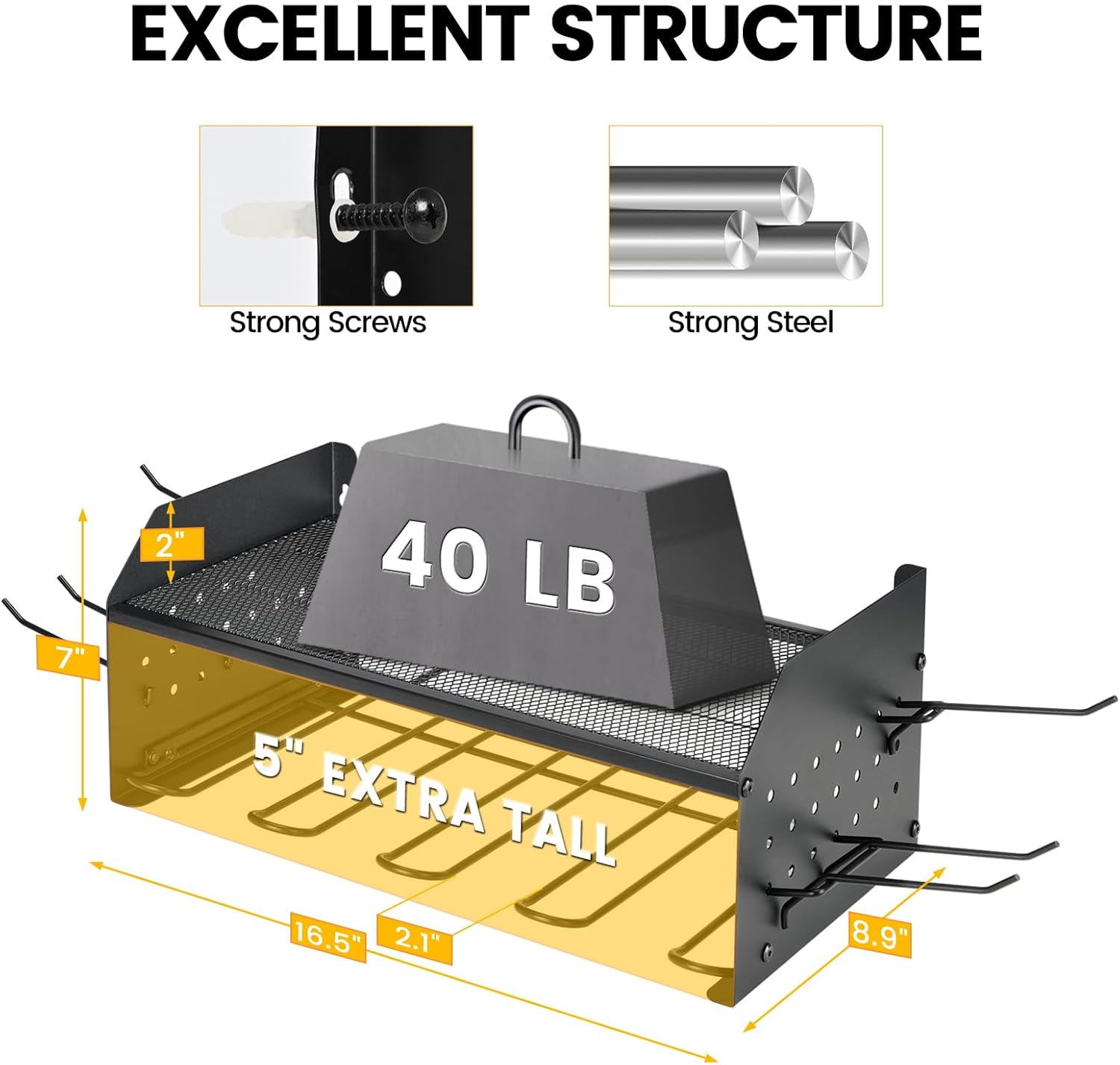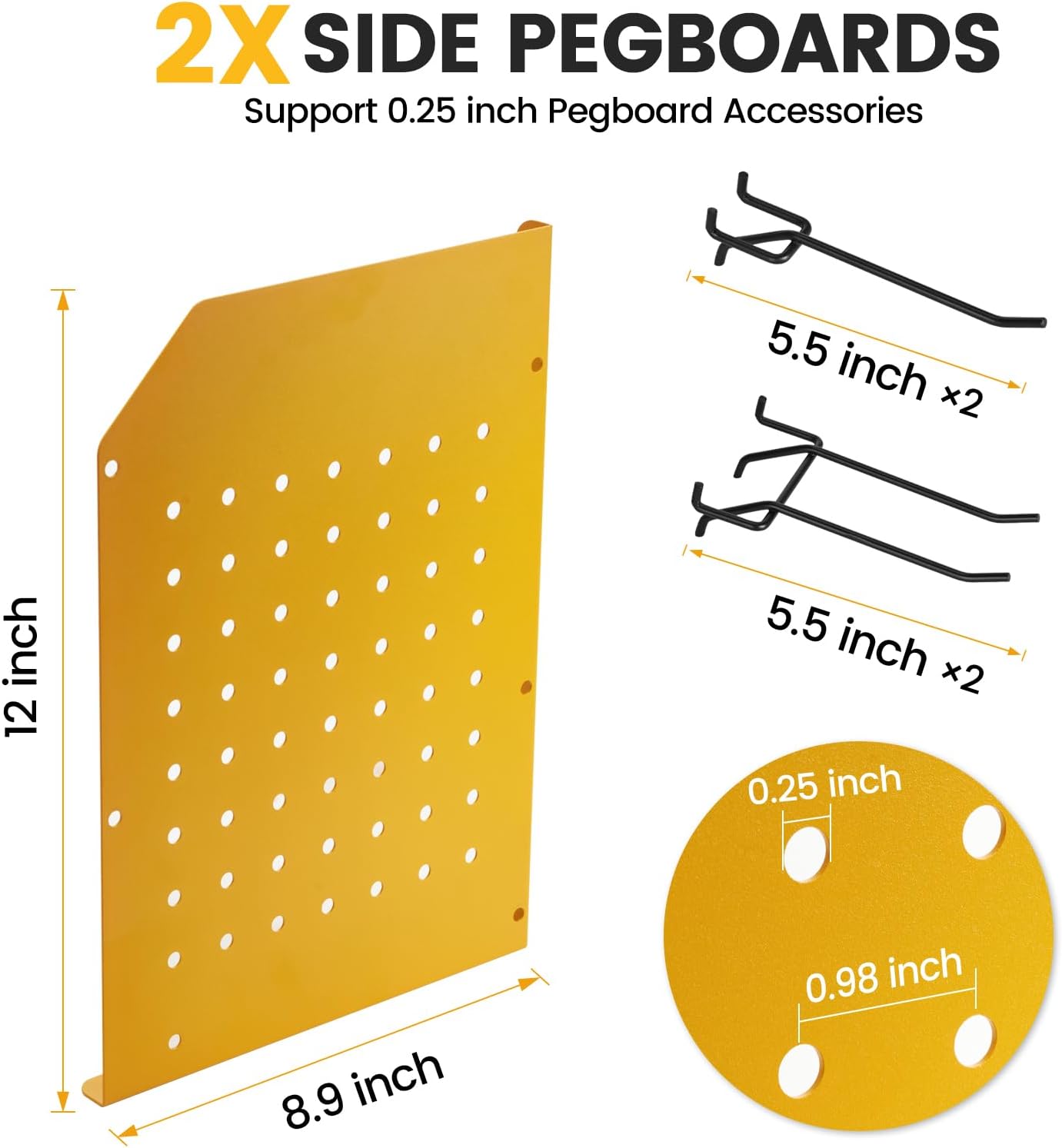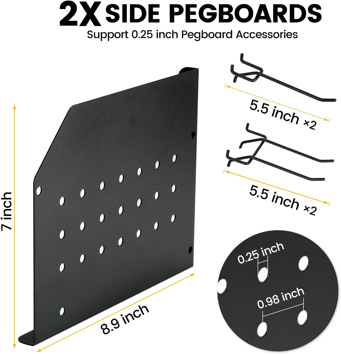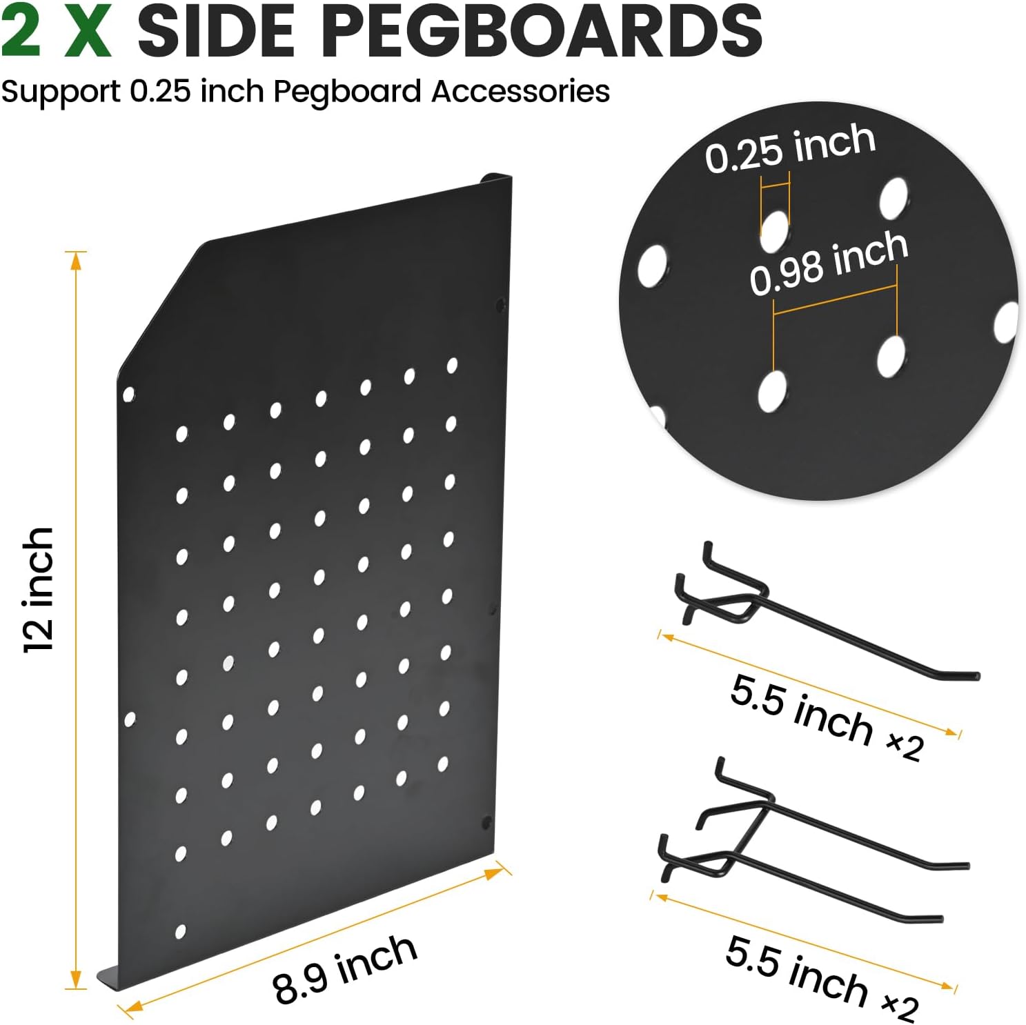 - Versatile Side Pegboards: Hang garage tools on 8.9"W × 12"L side pegboards with included long hooks, drill bit rack, and cordless rack, supports 0.25" pegboard organizer accessories for DIY customization