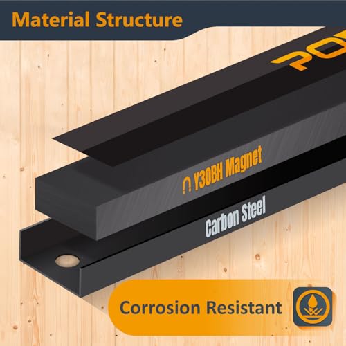 - QUALITY: Crafted from durable carbon steel, this magnetic tool bar ensures sturdiness and resists corrosion. The powerful Y30BH magnets, known for their anti-degaussing properties, deliver strong suction, holding up to 10-11 lbs (4.5-5kg) of tools securely