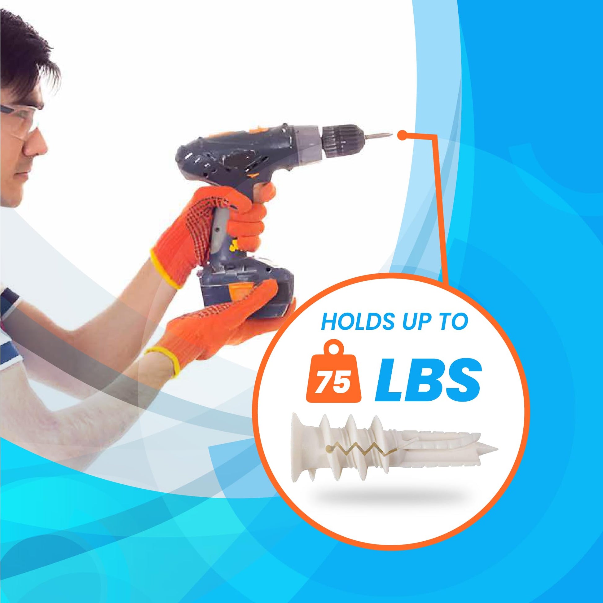 - [ Built to Last ] – Crafted from high-quality nylon with sharp #8 screws, these anchors provide a secure grip with exceptional resistance to cracks and loosening.