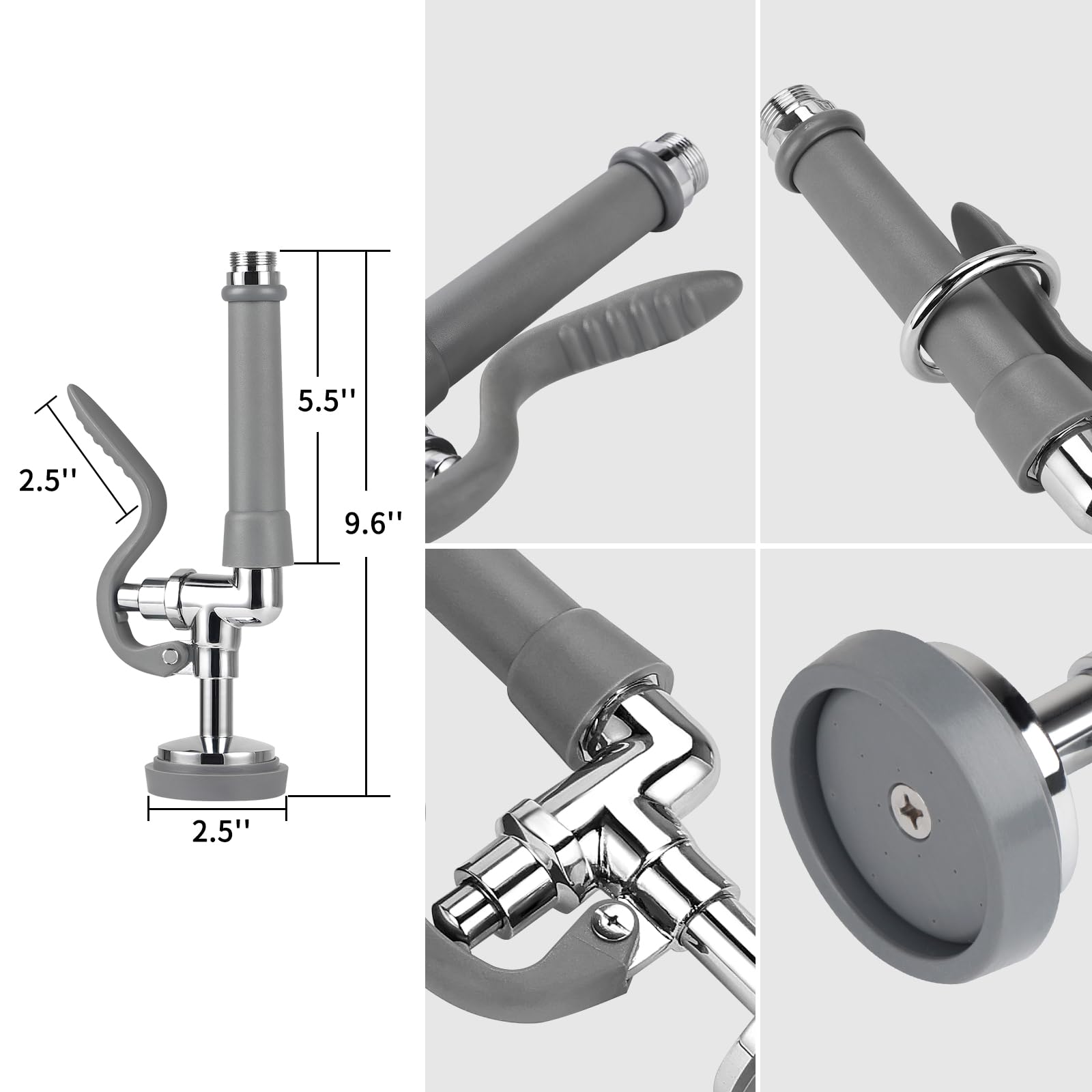 - [Pre Rinse Spray Valve with Hose] - This 60-inch stainless hose with grey spray valve is designed as a replacement part for more than 35” height commercial kitchen faucets or connected wall mount faucet spouts. Widely used for homes, restaurants, hotels, and other heavy-duty industrial kitchens.