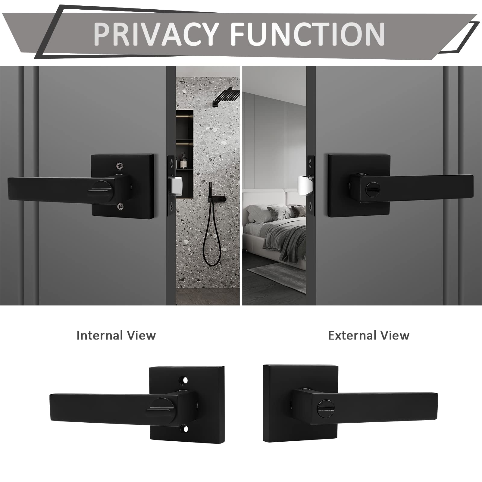 Probrico 4 Pack Square Privacy Door Levers Black Privacy Door Handles Lock Handleset Keyless Lockset Door Knobs Interior Handles for Bedroom & Bathroom