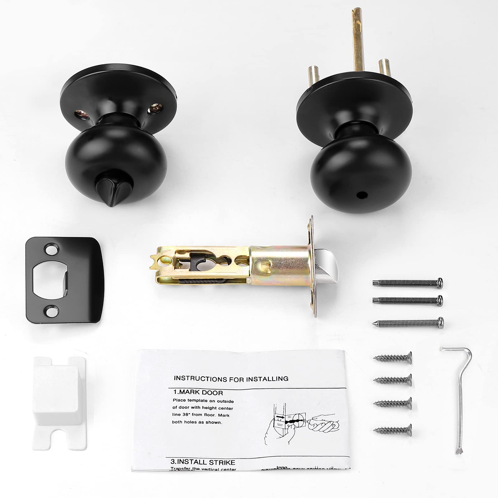 - Universal handing: fits both right handed and left handed doors;Package Includes: Selected Door Knobs, Keys, Solid Latch, Screws, Installation Instructions and all the mounting hardware needed. Easily to Install.