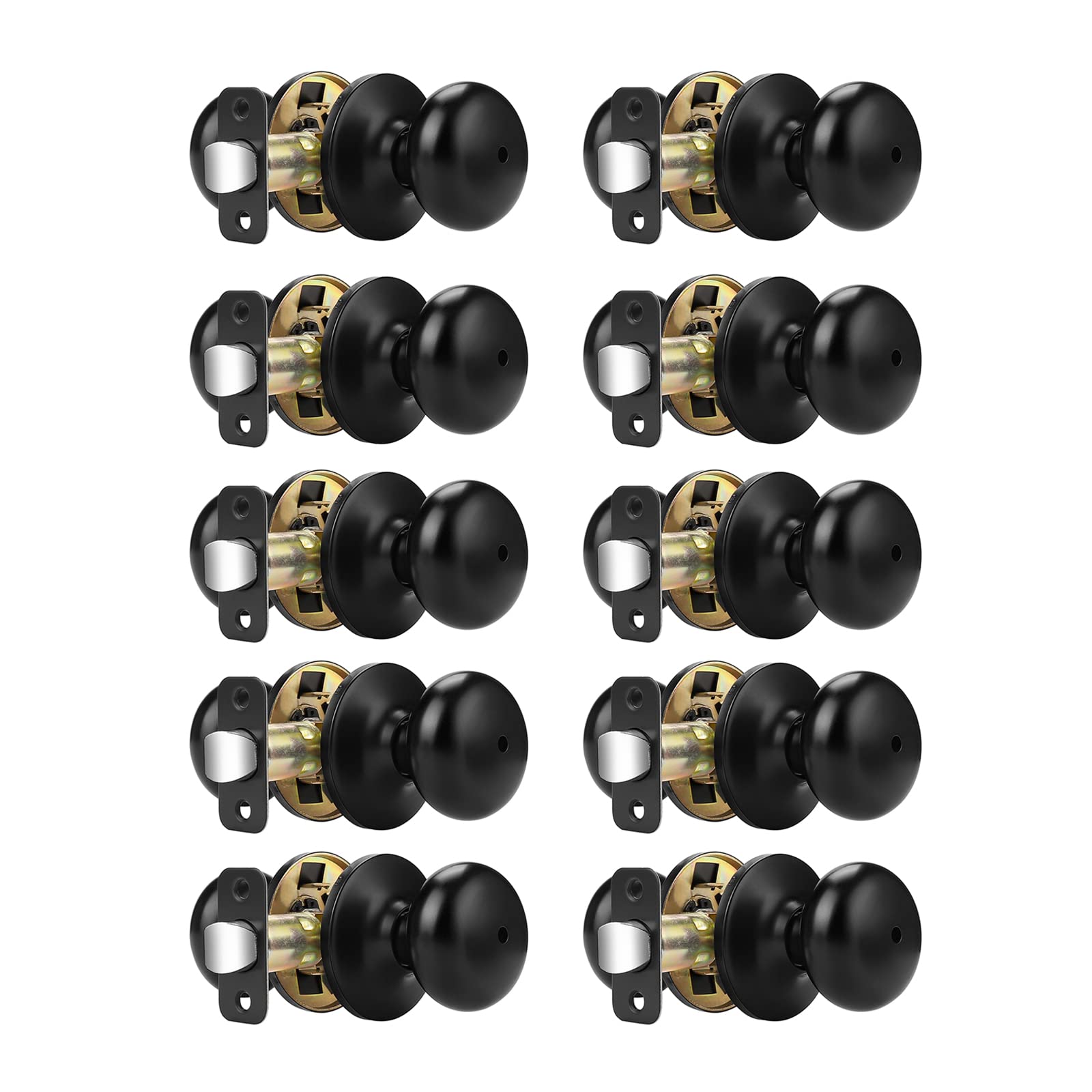 Probrico Keyless Privacy Door knobs for Bathroom Bedroom, Black Door Knobs Interior 10 Pack, Solid Adjustable Latch,Universible Door Handles