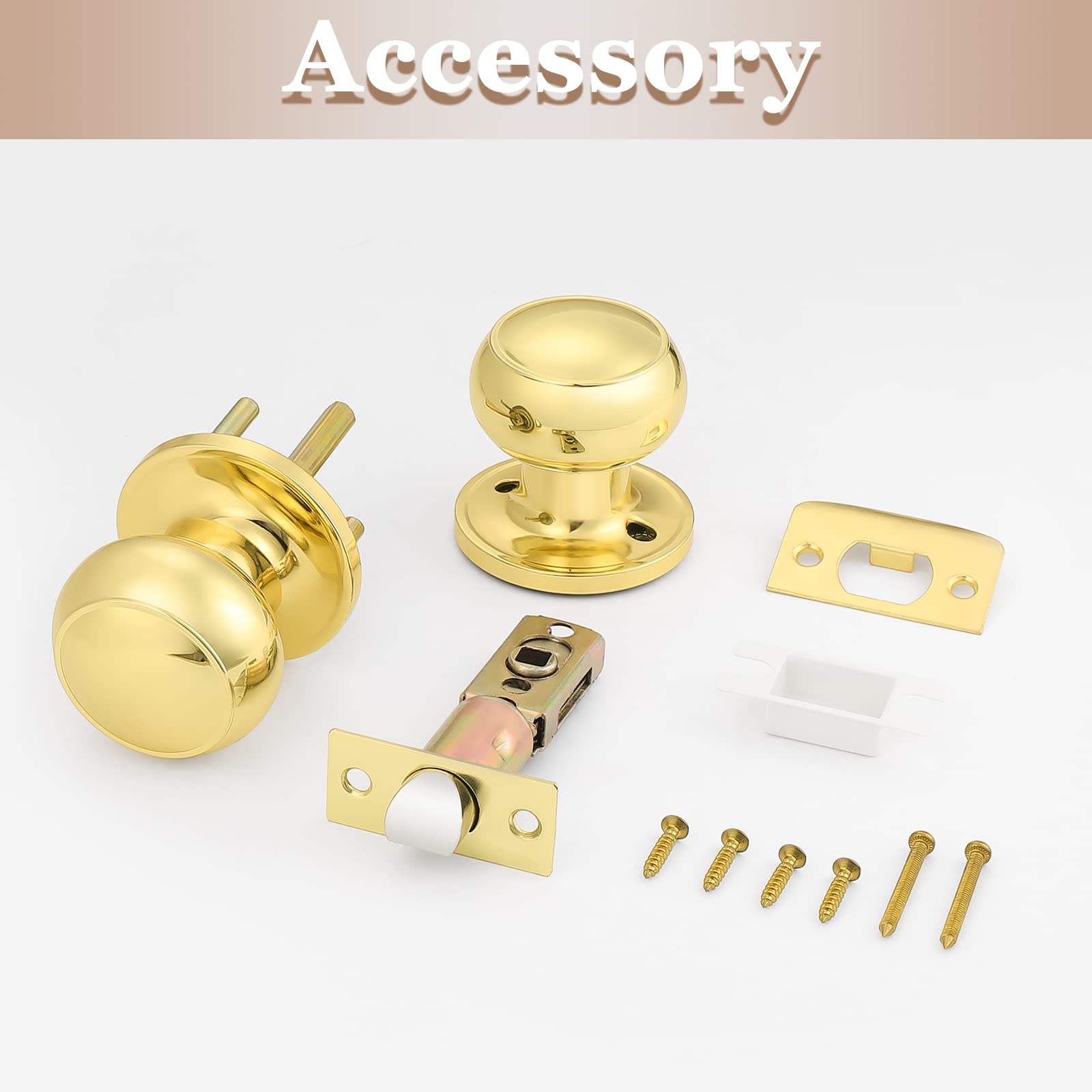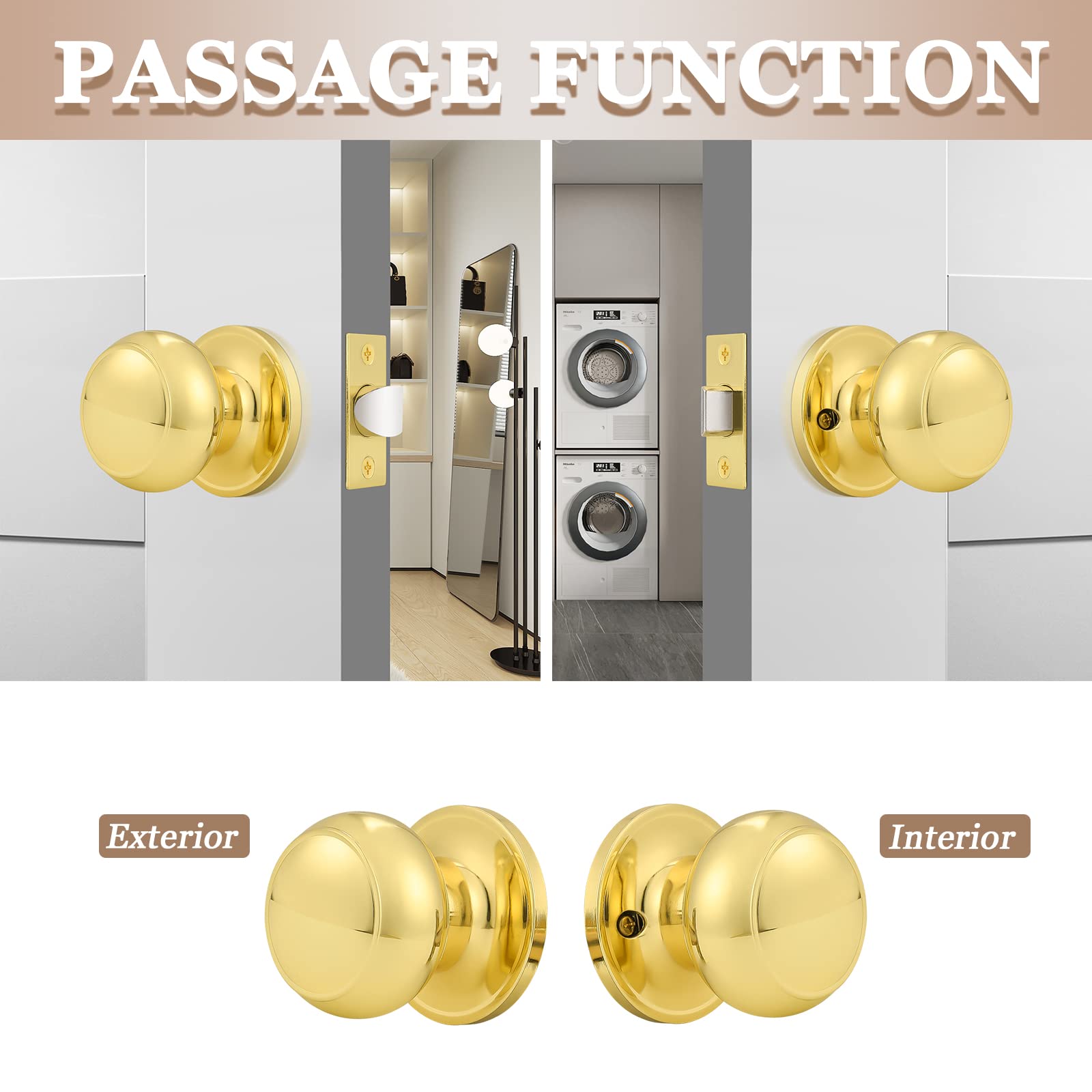 Probrico Round Door Knobs Passage Lock Polished Brass for Closet Hallway Passage Handle Keyless Lockset 10 Pack