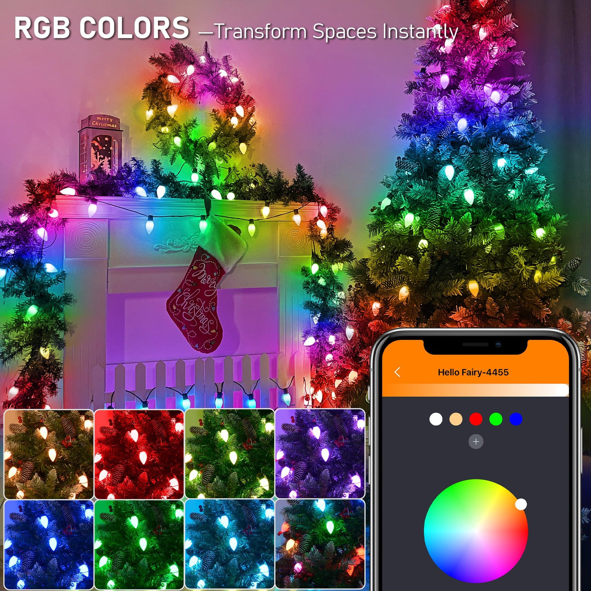 Probro Smart C9 RGB Christmas Lights, 66 FT 100 LEDs with APP, Music Sync, 105 Dynamic Modes, Waterproof Connectable String Lights for Outdoor Roofline, Xmas Tree, Holiday Party, Commercial Decor
