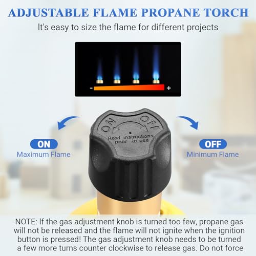 - ¡¼Adjustable Flame Control¡½ Easily control the flame size with the built-in valve knob, making this Propane Torch simple and safe to operate with one hand.