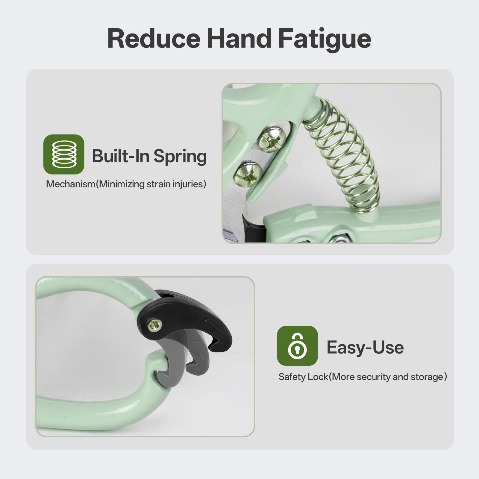 - Easy-Safe Lock Mechanism:The one-touch safety lock on these plant shears instantly secures blades in closed position, preventing accidental openings during transport or storage while meeting safety standards.